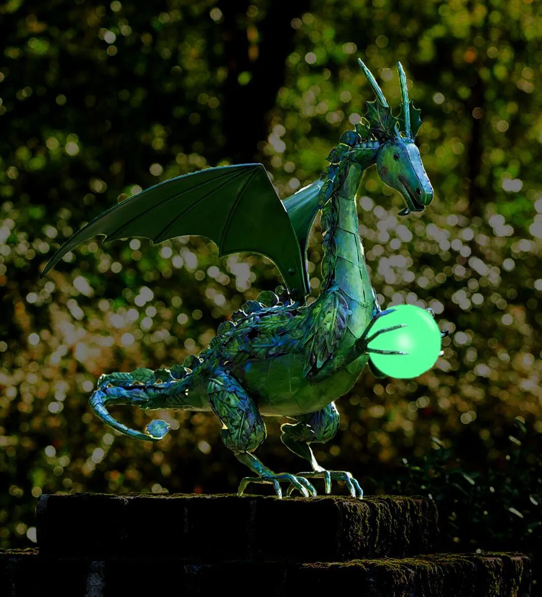 This fantasy-inspired garden ornament brings a sense of mystical charm and whimsy to your outdoor space. The glowing ball feature and flying dragon design combine to create an enchanting atmosphere, making it perfect for those who want to add a magical element to their garden or landscaping.