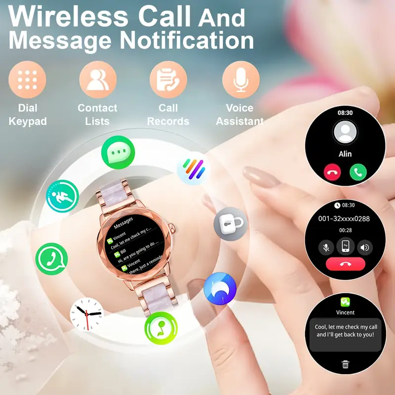 The RESOPINDA 2025 Women’s Smartwatch combines elegant style with advanced smart features, designed specifically for modern women. With a 1.19-inch TFT display, wireless calling, and female-focused health functions, this smartwatch provides convenience, wellness tracking, and sophistication in one compact device.