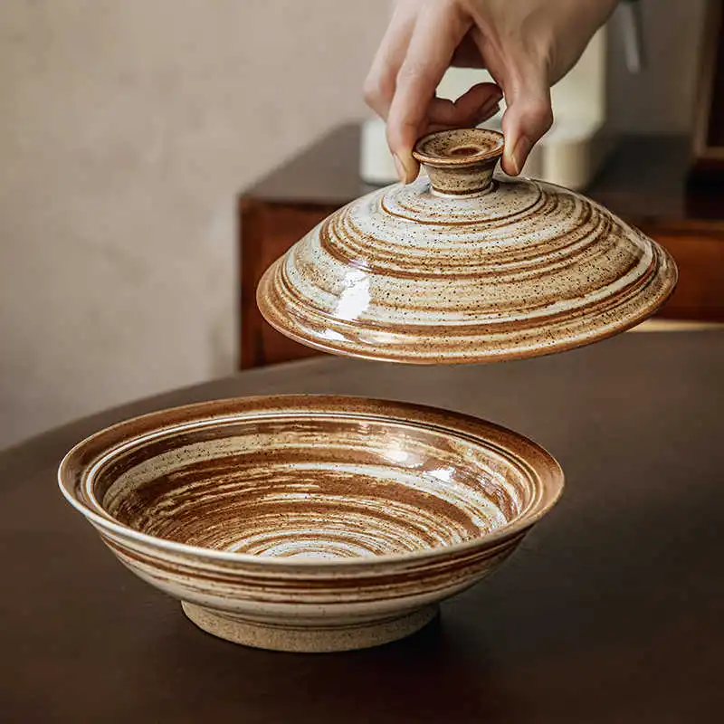 Color classification: Brush Pattern-7.5 inch stoneware with lid meal Bowl