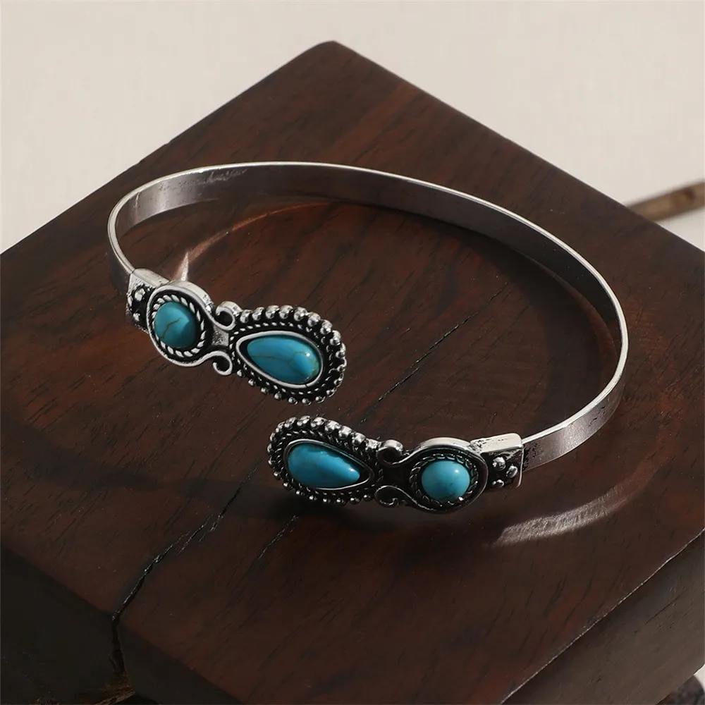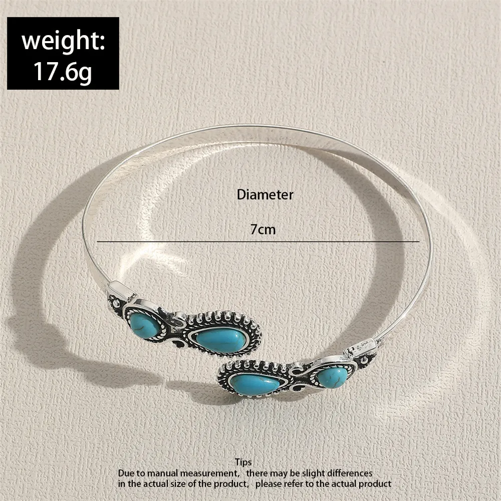 Retro Alloy Turquoise Open-ended Bracelet Women