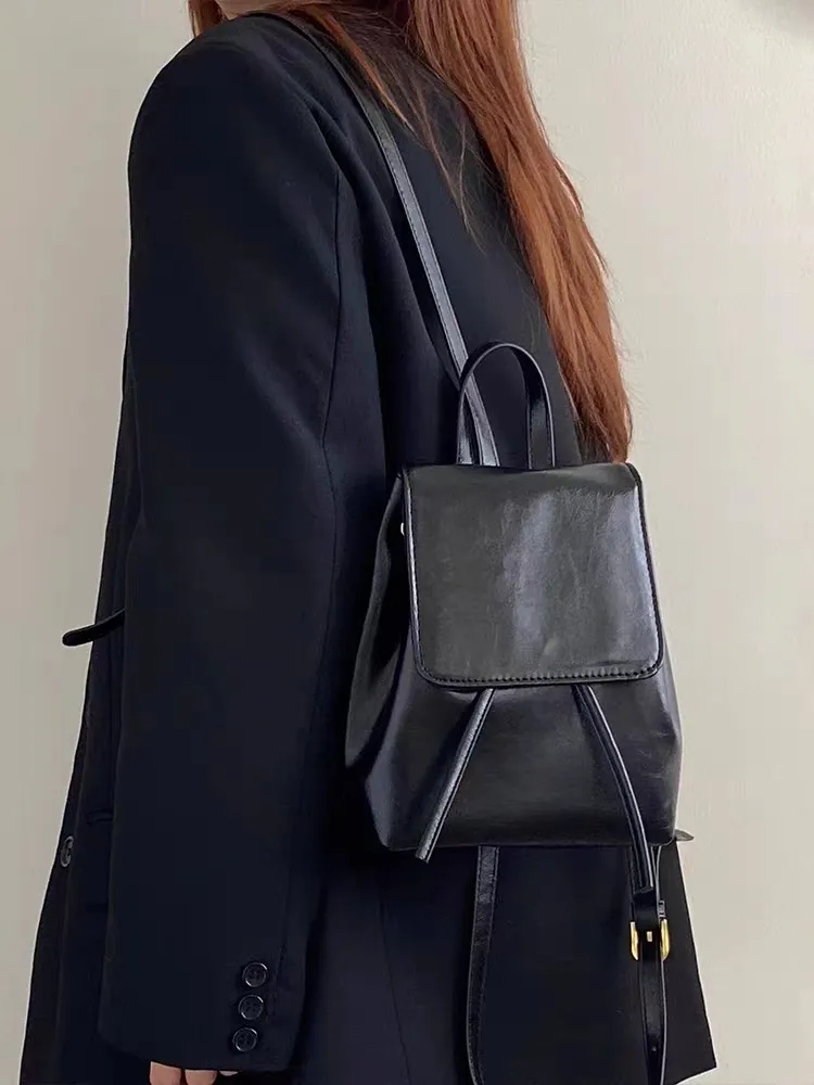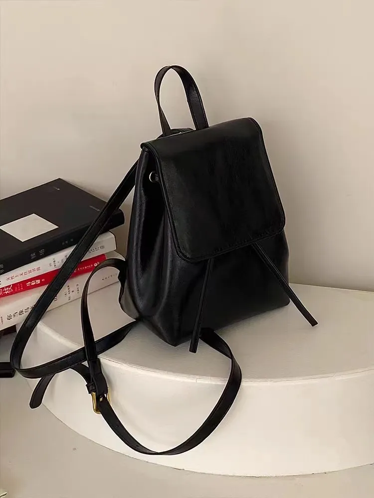 Retro Brown Backpack Women's Simple Literary Shoulder Bag