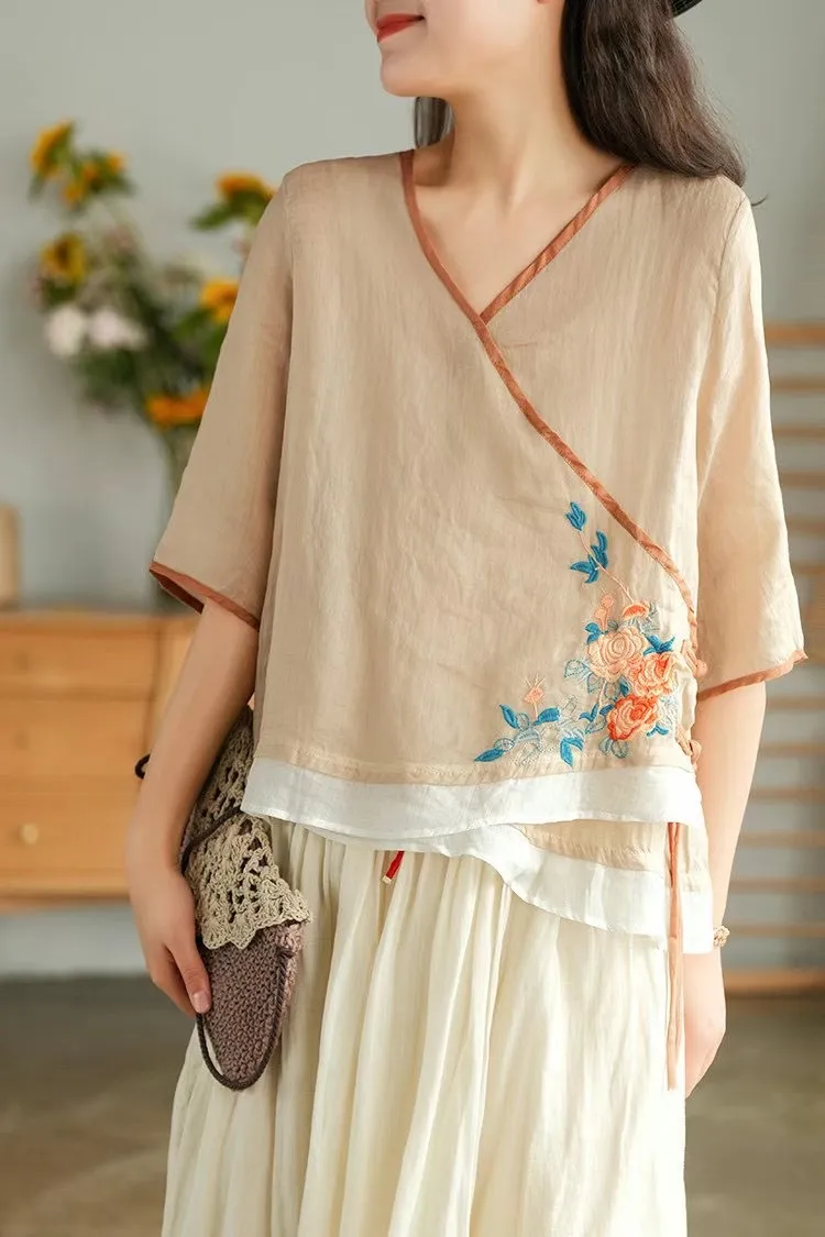 Crafted from high-quality, breathable fabric, this top ensures comfort throughout the day. The retro button details enhance the shirt's stylish appeal, while the embroidery provides a pop of color and texture, making it a standout piece in any wardrobe. Whether paired with jeans, skirts, or trousers, this shirt offers endless styling possibilities for any occasion.
