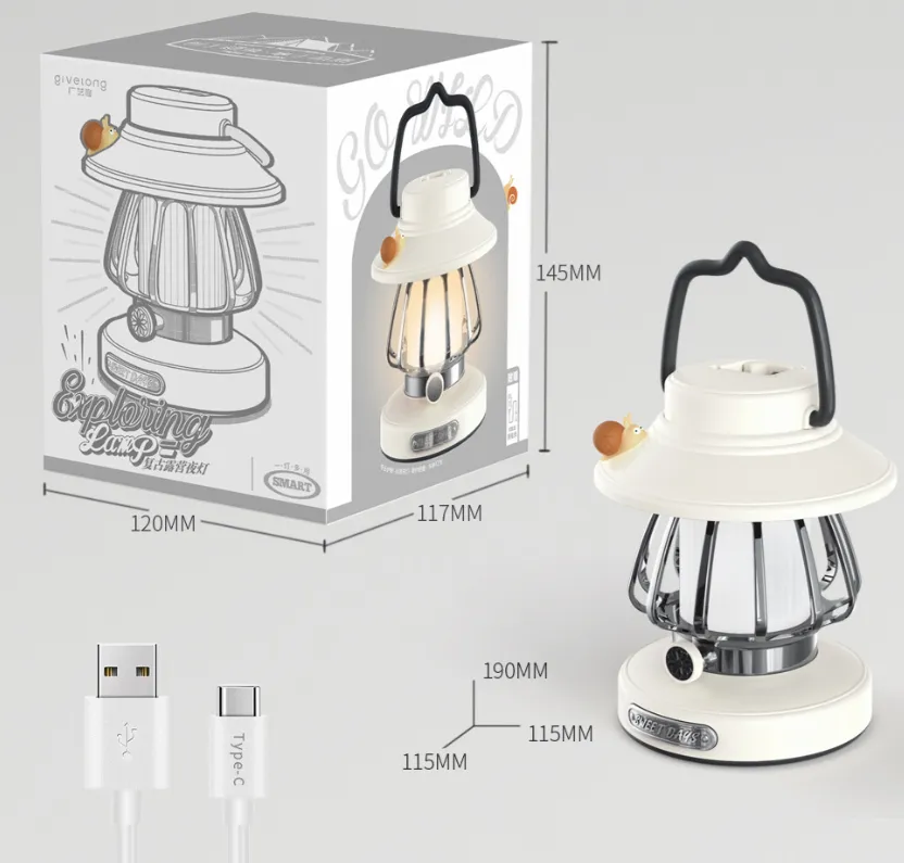 Crafted with rugged outdoor use in mind, this night light features a robust, durable design that can withstand the elements. Powered by a rechargeable battery, it provides long-lasting light that can be used in a variety of outdoor settings. The vintage design, combined with modern charging technology, makes it a versatile and must-have companion for every adventure. With its adjustable brightness settings, you can create the perfect atmosphere whether you need bright light for cooking and setting up camp or a soft glow for relaxing after dark.