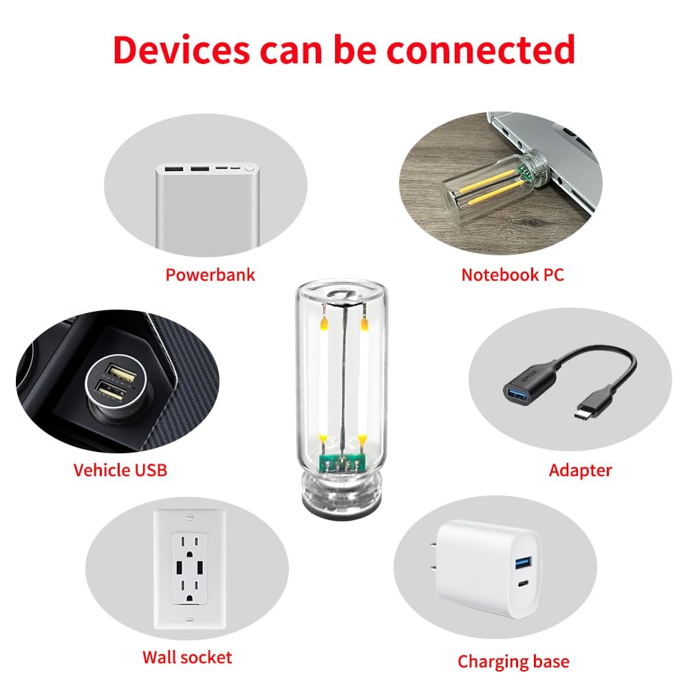 - 4.This product is made of ceramic tungsten wire that emits light. Power supply: 5VUSB interface, current: 8MA-16MA, tested for 6 hours without burning hands.