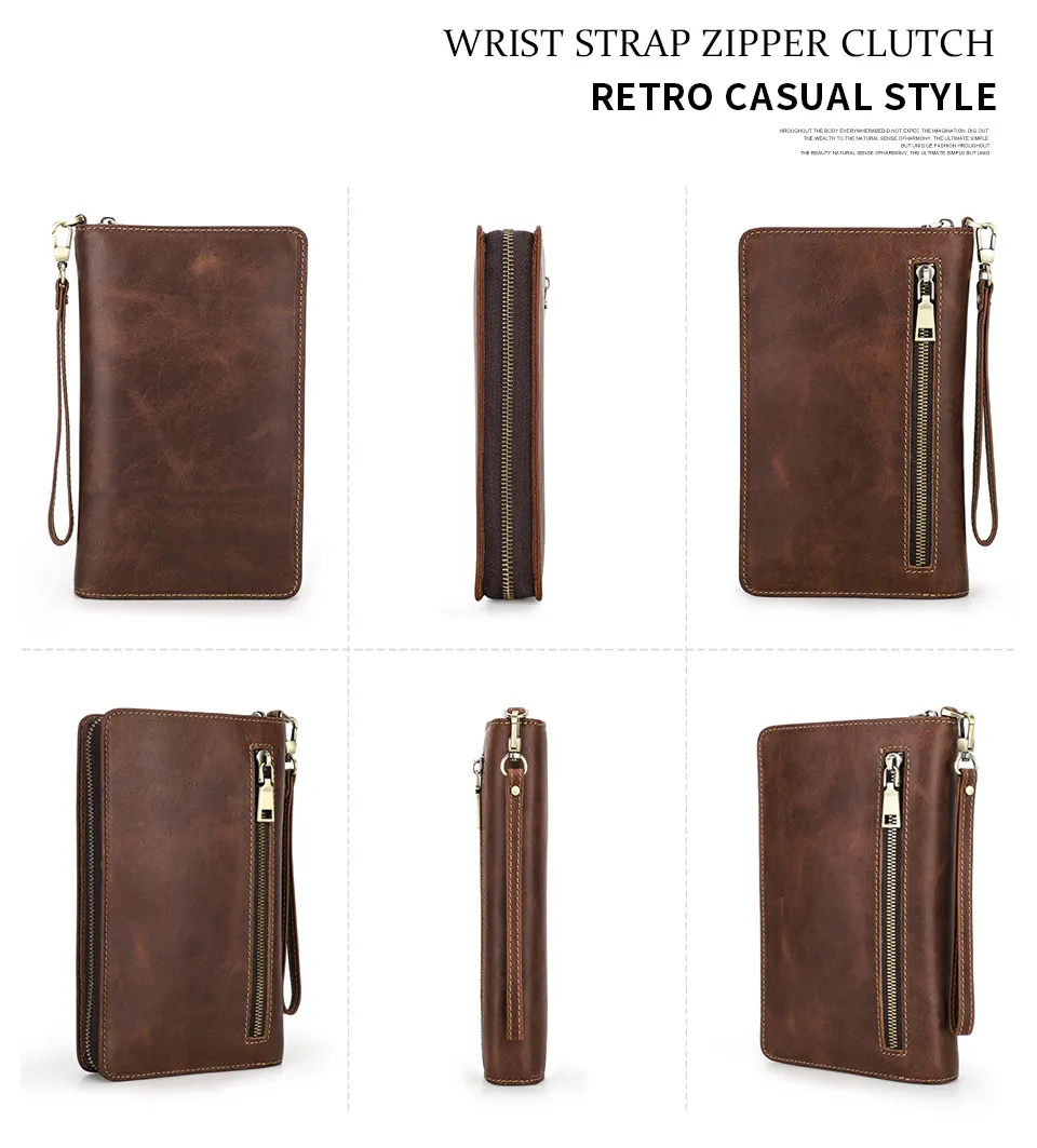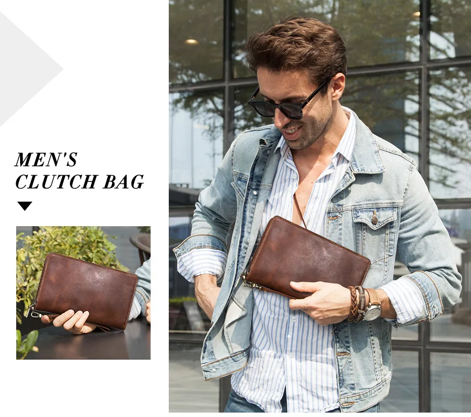 Retro Crazy Horse Cowhide Business Casual Clutch