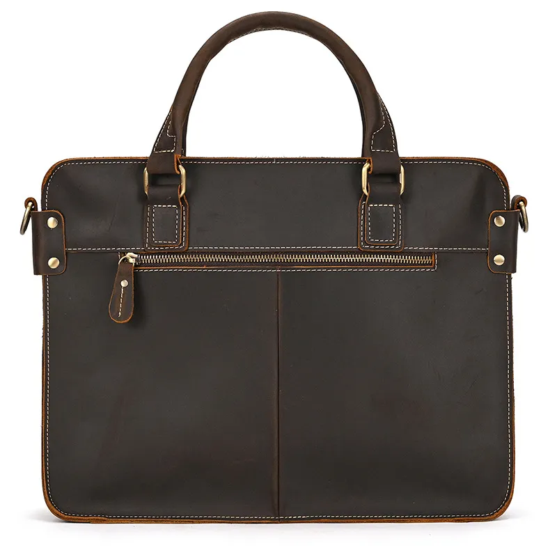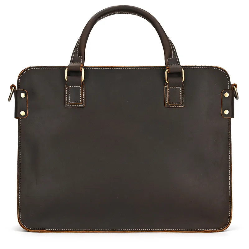 high-quality crazy horse leather, this briefcase boasts a unique vintage aesthetic that develops a rich patina over time, ensuring that no