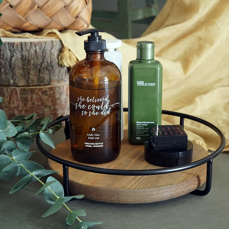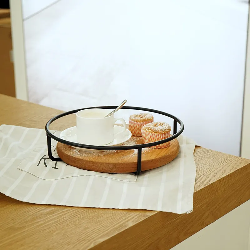 Product name: Old European style metal wooden frame exquisite round tray