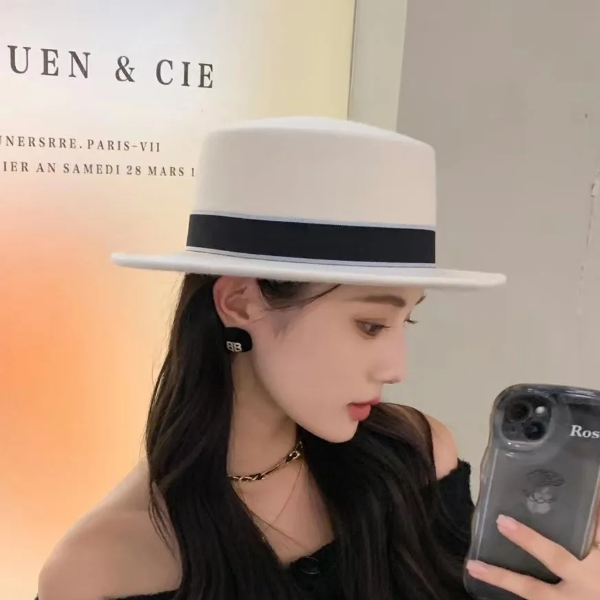 Retro Flat Top Hat Women's Felt Cap