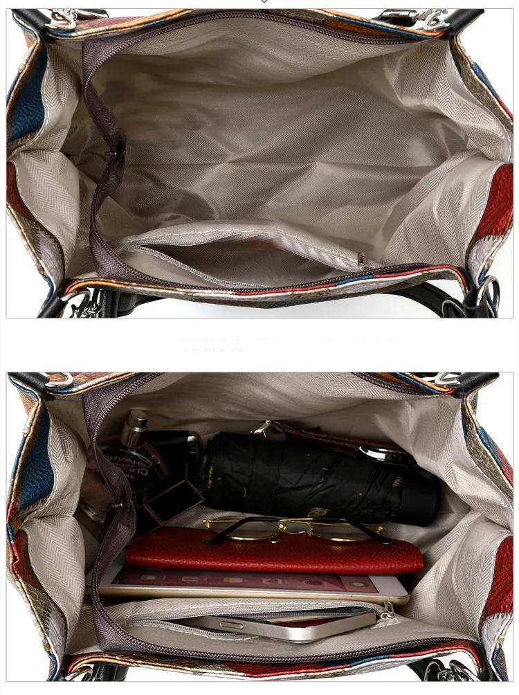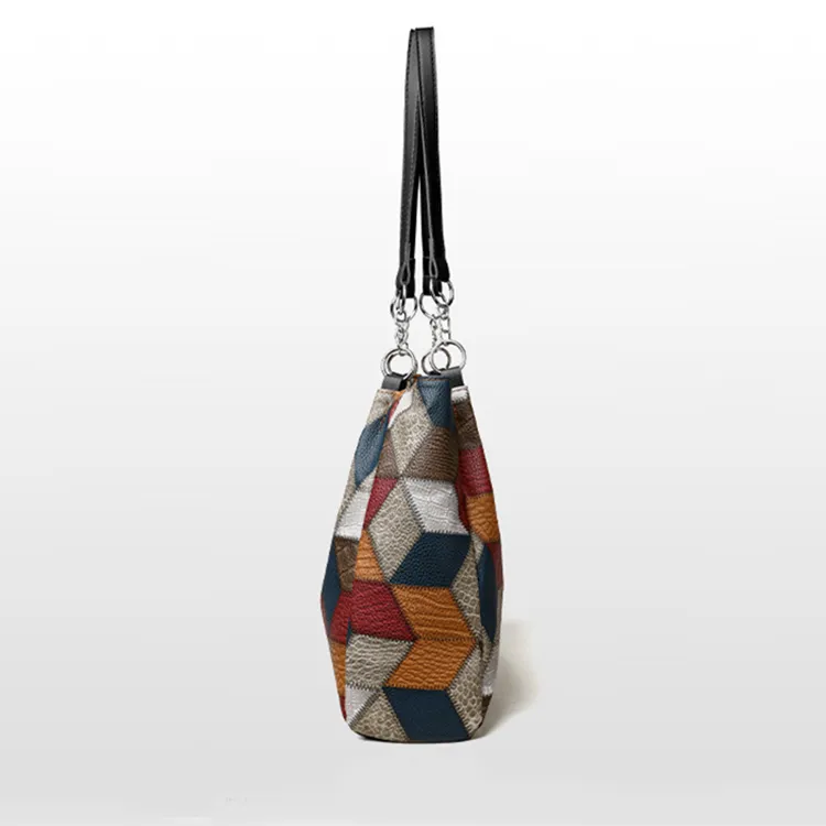 Retro Geometric Pattern Color-matching Shoulder Bag Fashion Large Capacity Stitching Handbag For Women Totes