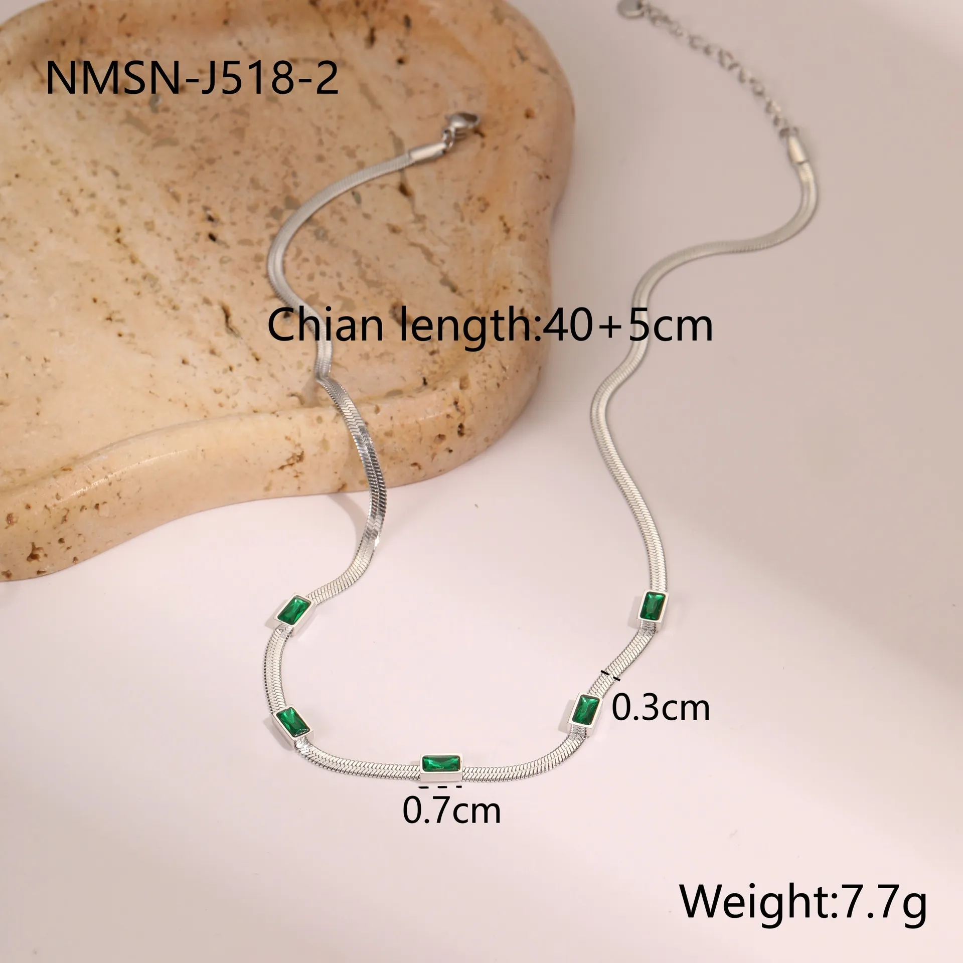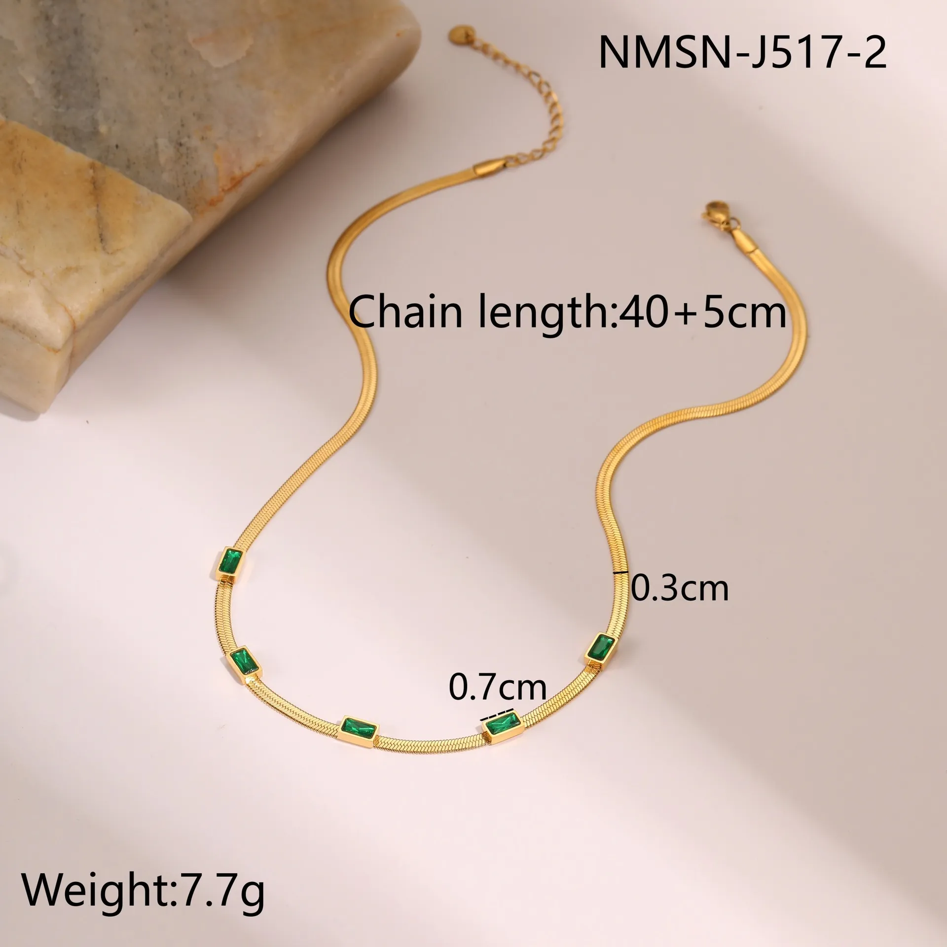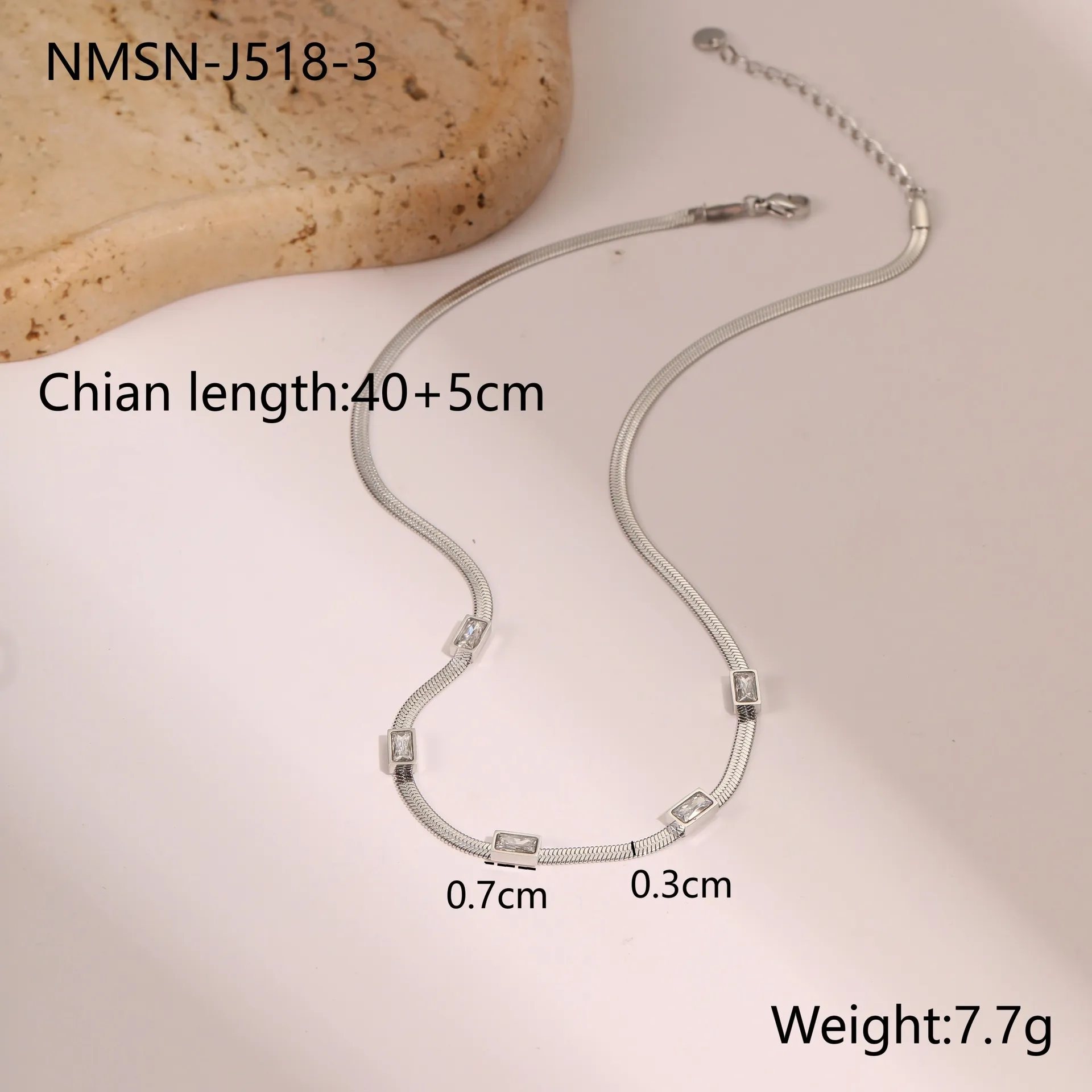RETRO Geometric Square Zircon Necklace – Stainless Steel Flat Snake Chain