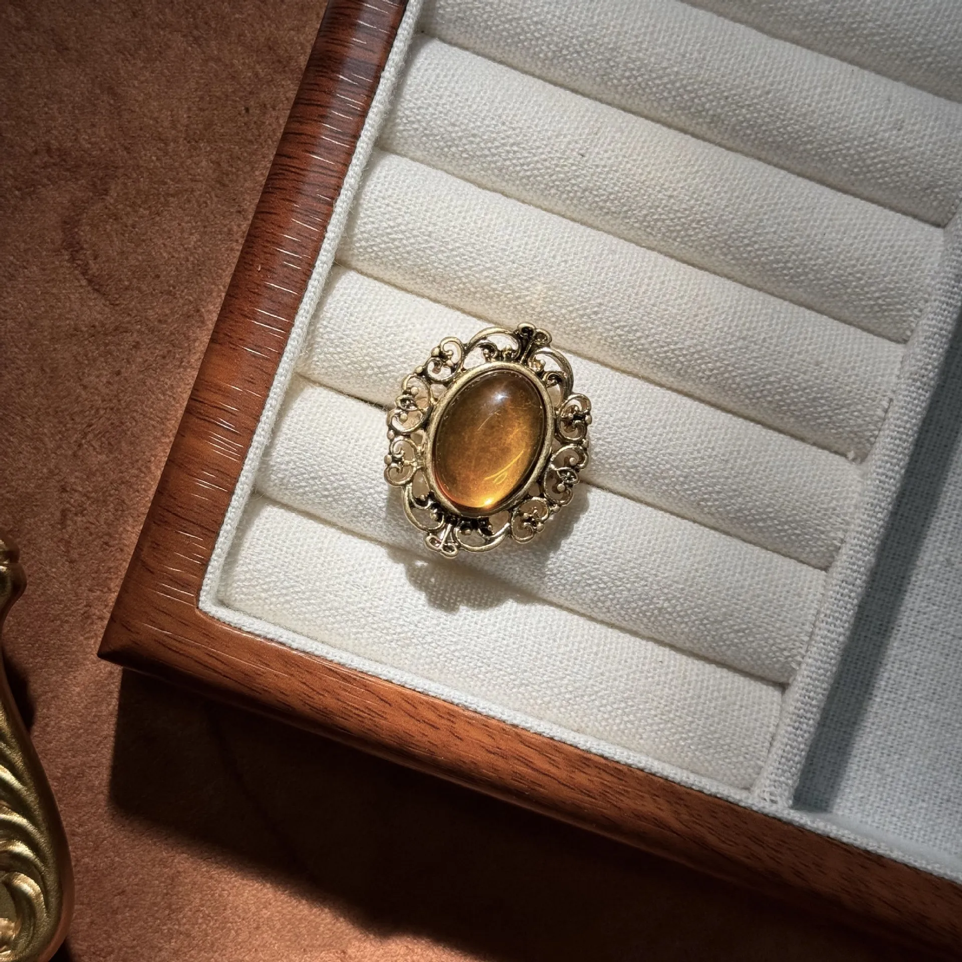 Key Features of the Retro Glass Maillard Light Luxury Ring