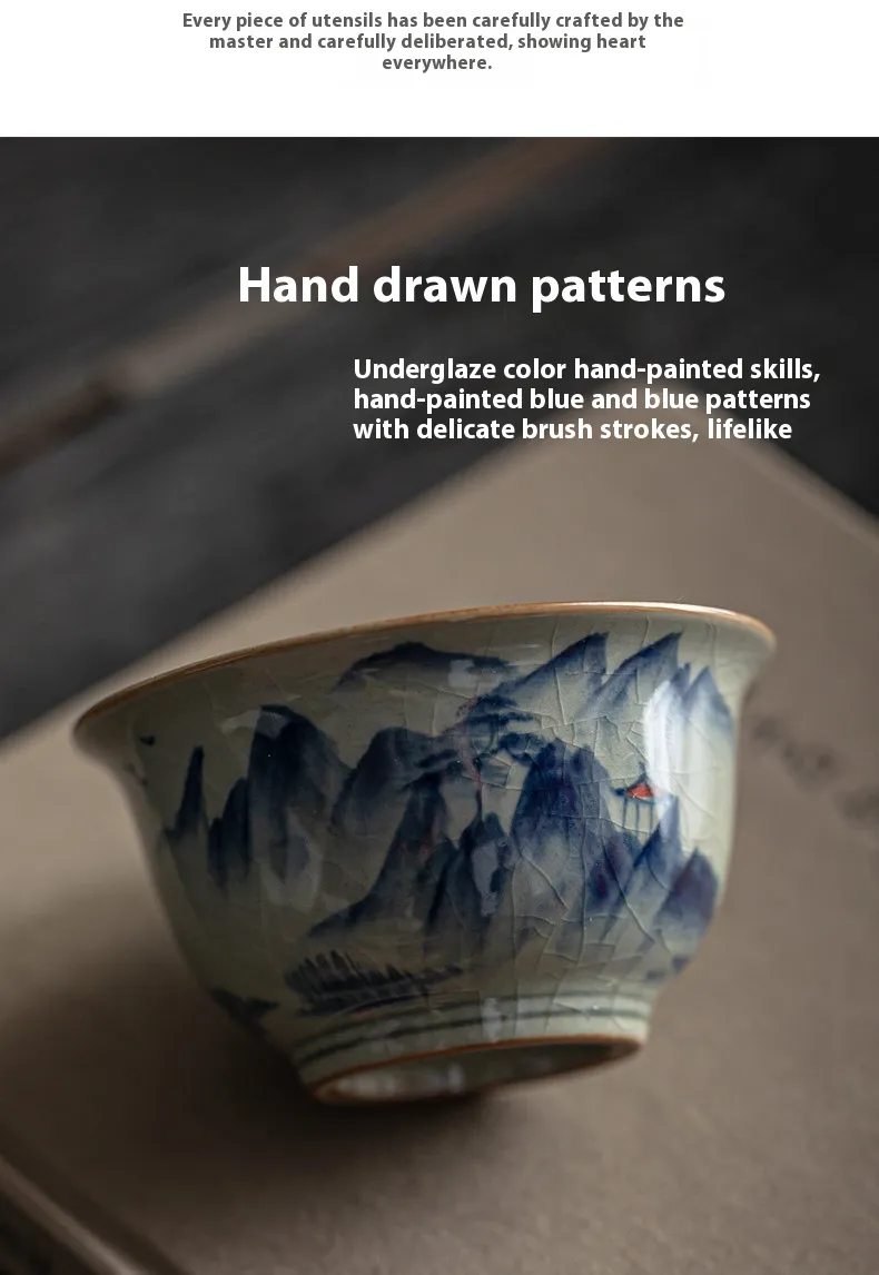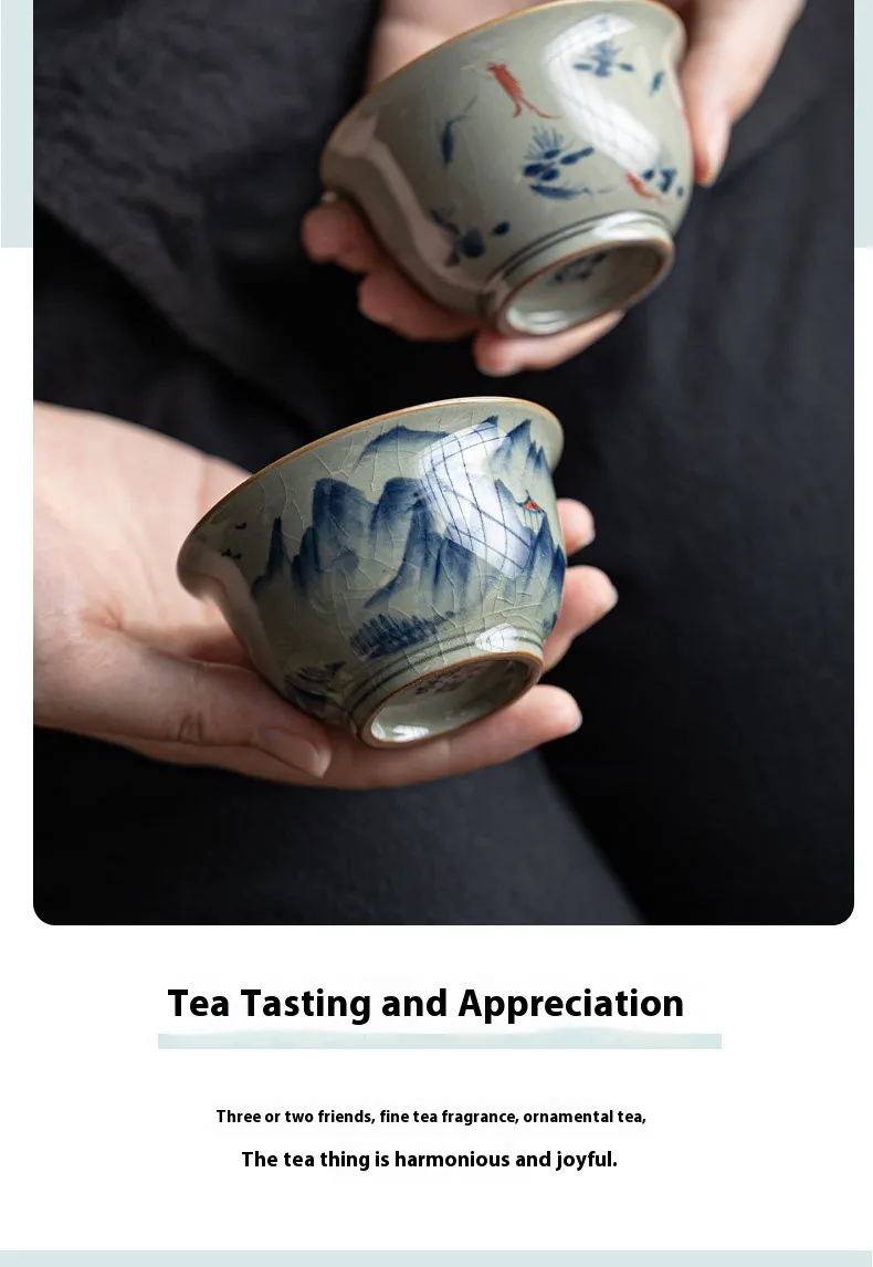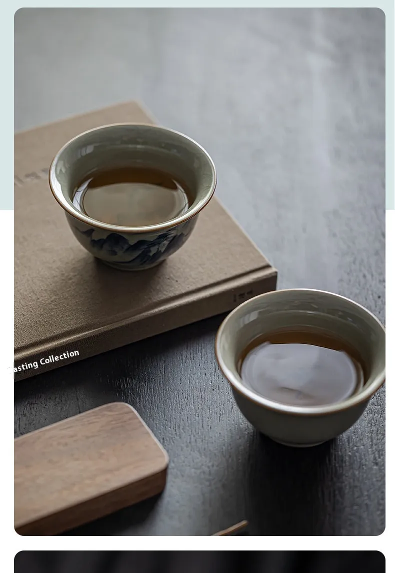 Retro Hand-painted Old Clay Ru Ware Kung Fu Tea Cup