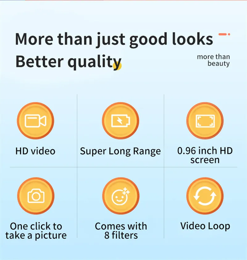 5. One-button video recording, easy to operate, easy to carry, can be used as a gift for children, friends, partners, and so on. Suitable for school, outdoor sports, traveling, hiking, cycling and so on.
