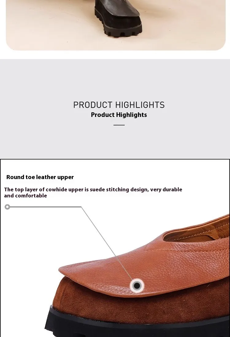 Elevate your footwear collection with the Retro Original Thick-soled Leather Toe Box Soft Bottom Platform Shoes For Women, combining retro charm, modern comfort, and practical design in one stylish package.