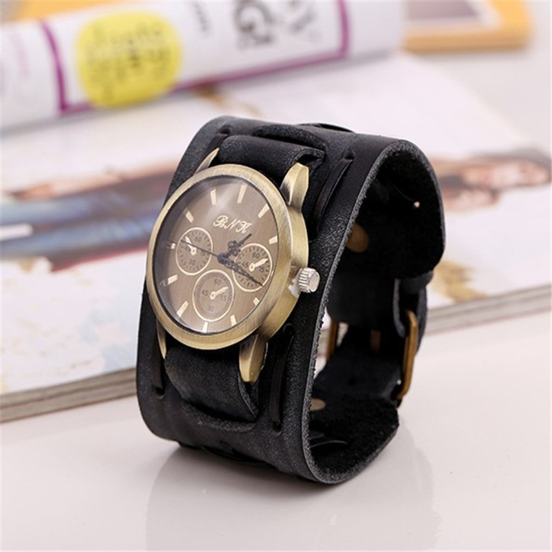 Make a statement with our Retro Punk Cowhide Men's Wrist Watches. Combining vintage style with modern functionality, these watches are perfect for adding a touch of boldness and sophistication to any outfit.Product information: