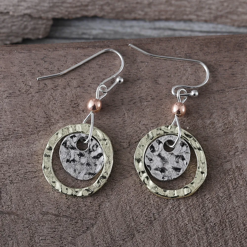 Retro Simplicity Coin Ring Overlapping Two-tone Earrings