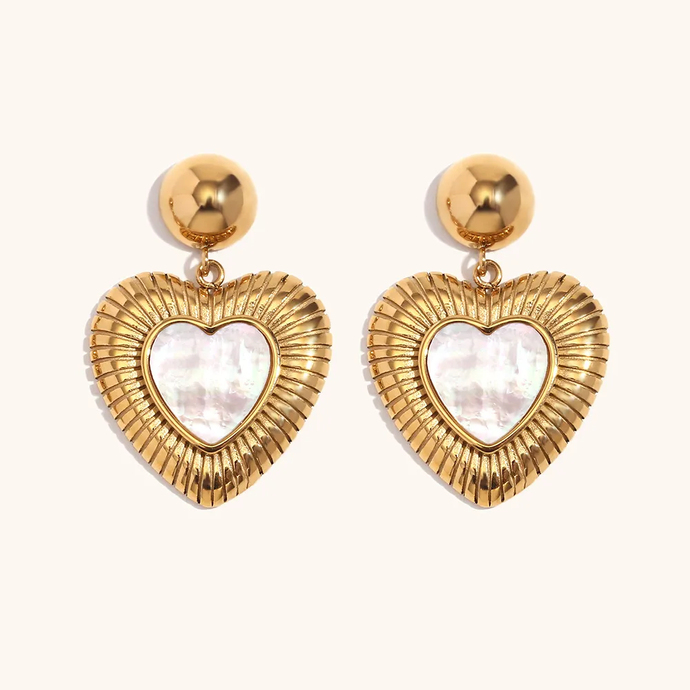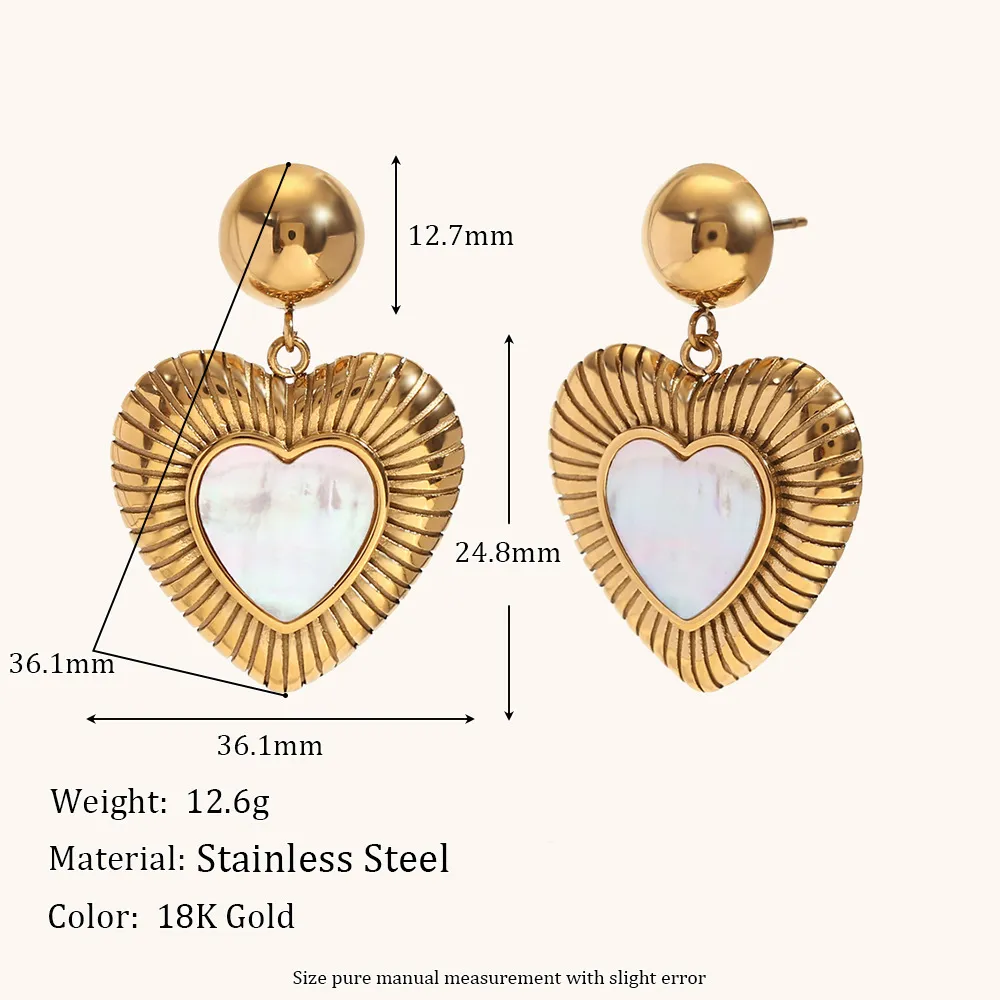 Color: Shell light peach heart pendant earrings-Gold
