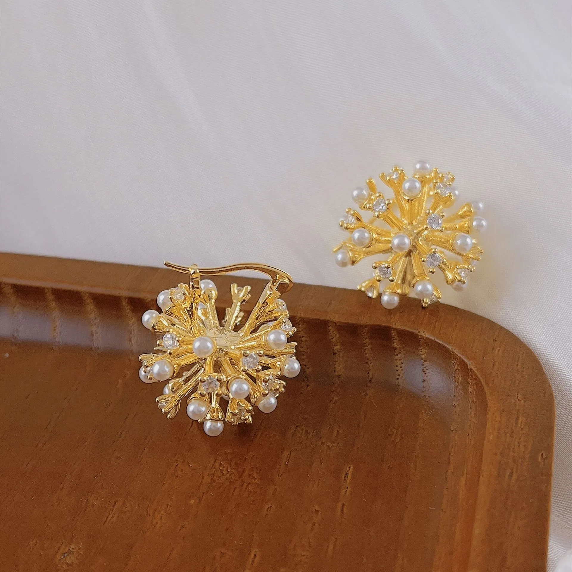 Retro Unique Design Zircon Pearl Fireworks Ear Clip
