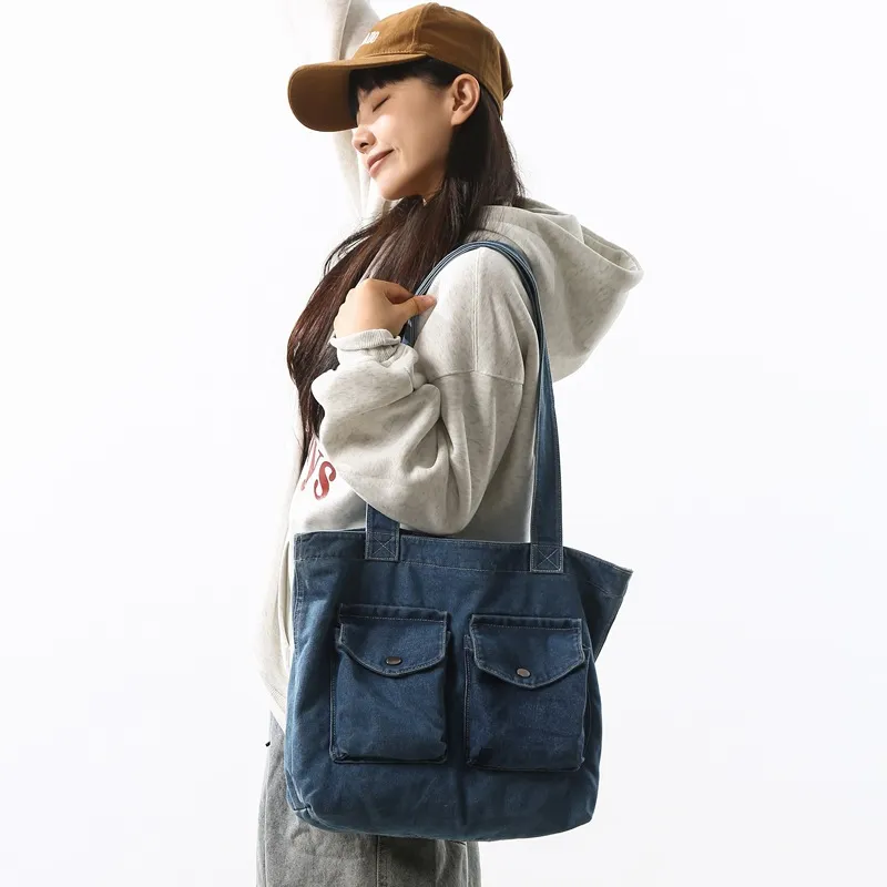 Crafted from premium-quality washed denim, this bag delivers an authentic retro aesthetic with a slightly faded, distressed finish. The denim material gives it a soft, relaxed look, making it the perfect complement to casual and street-style outfits.