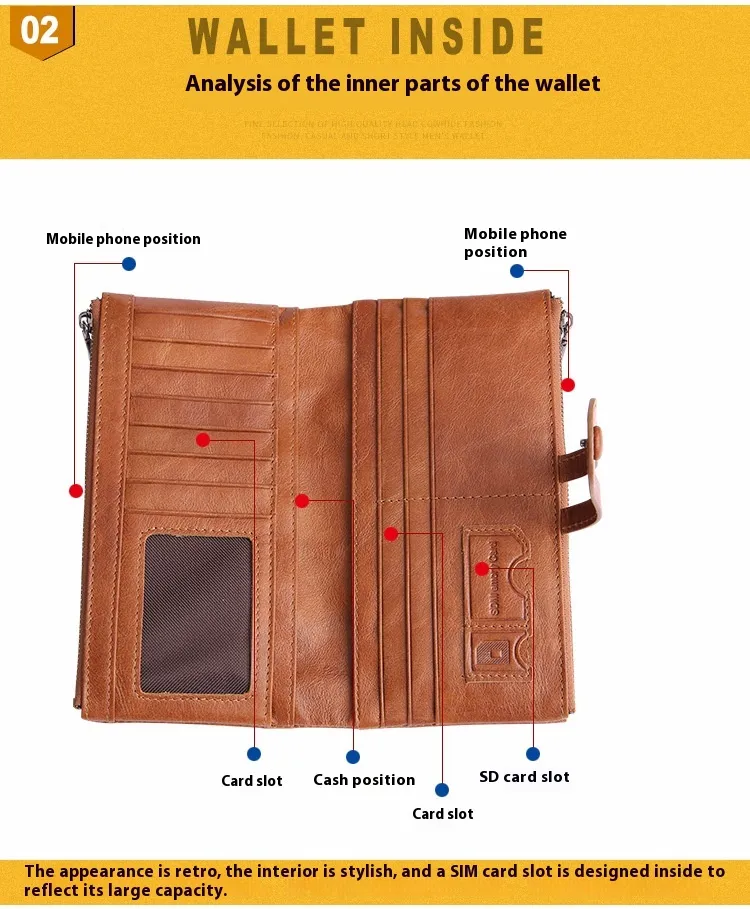 - Sleek and Functional: Long wallet design that offers plenty of space without being bulky.