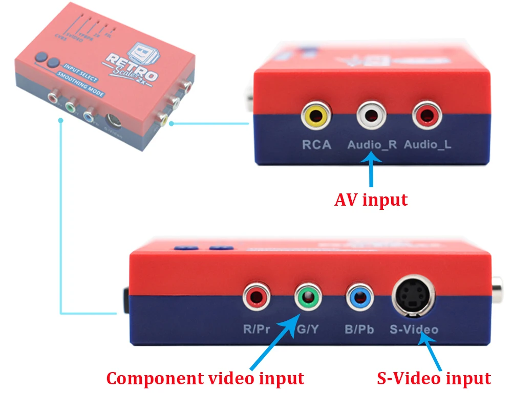 2. RetroScaler2X support component / AV/ SV signal input. Before purchasing, please confirm whether your game console can output these three video signals.