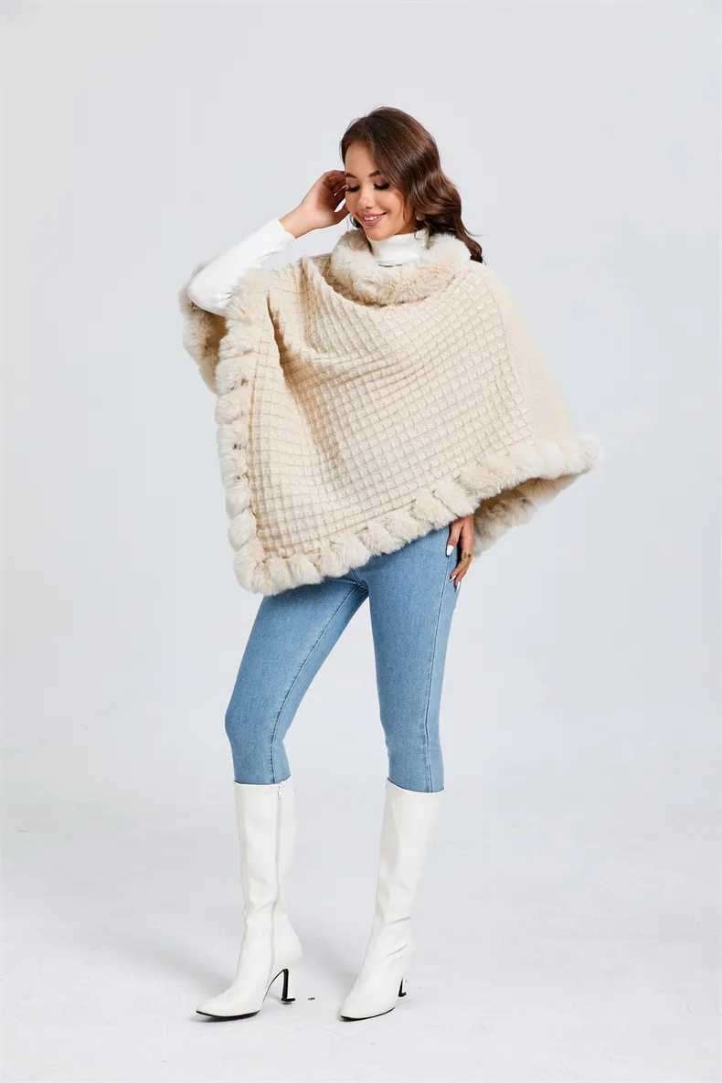 Rex Rabbit Fur Collar Shawl Cape Luxury Fur Cape Wraps Shawl Autumn Winter Fashion Graceful Cloak Outerwear Women Party Wedding Dress