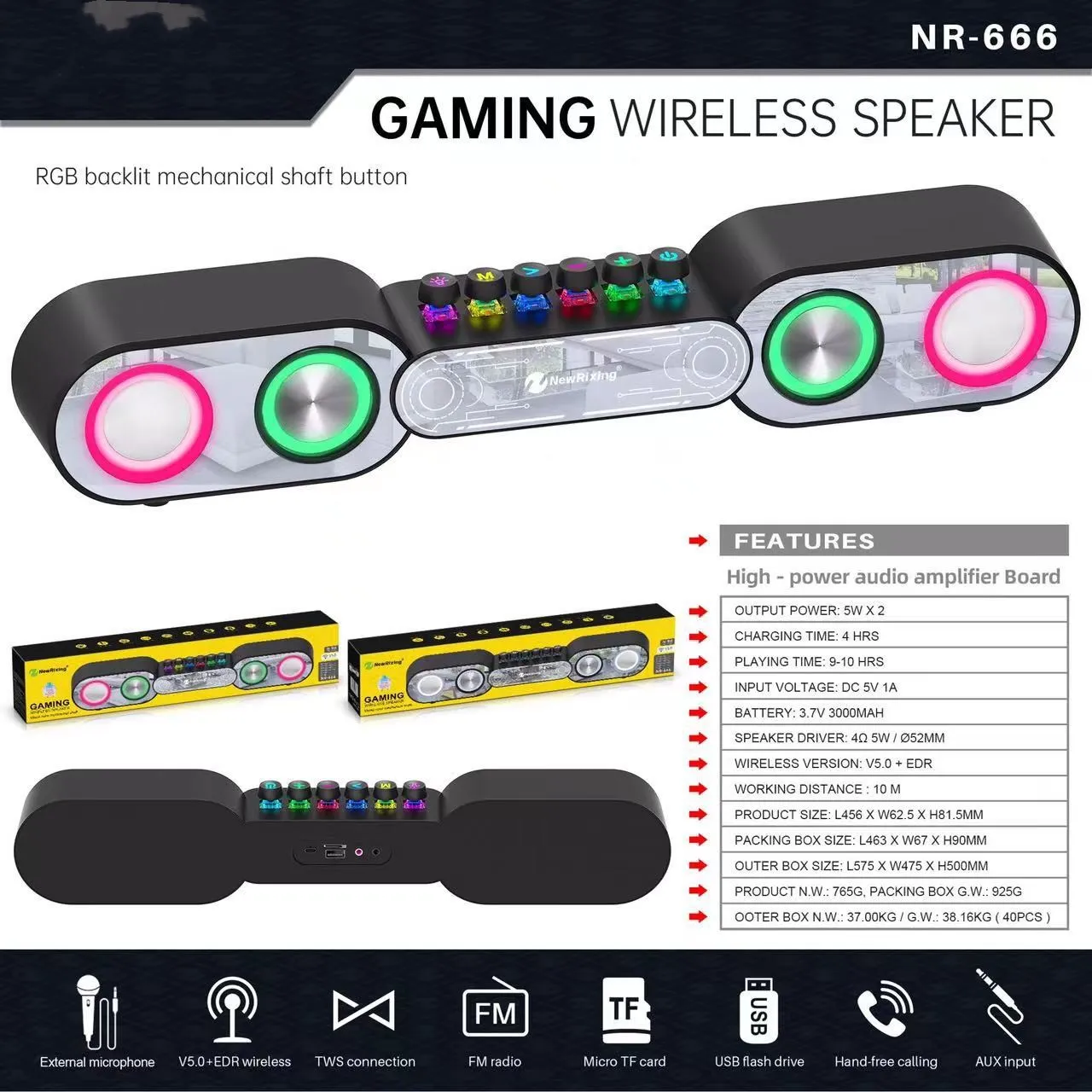 Key Features of the RGB Colorful E-Sports Bluetooth Speaker