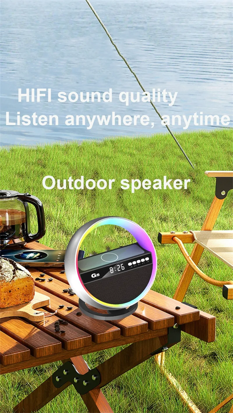 Transform your space into a vibrant and multifunctional environment with the Multifunction RGB Night Light Wireless Charger Bluetooth-Compatible Speaker. This innovative device combines a night light, wireless charger, and Bluetooth speaker into one stylish unit, making it the perfect addition to your bedroom, living room, or office. Whether you’re winding down after a long day or hosting a gathering with friends, this multifunctional gadget is designed to enhance your experience.