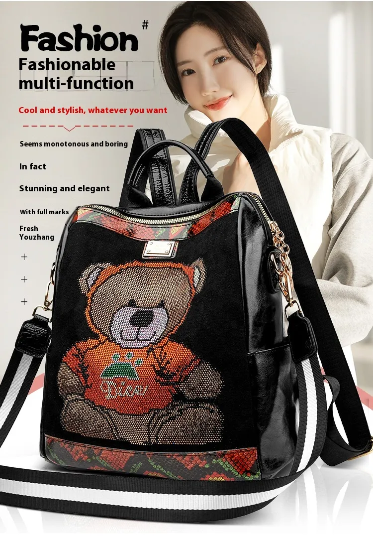 Turn heads with the Rhinestone Backpack, a dazzling and practical accessory designed for modern women. Combining bold rhinestone