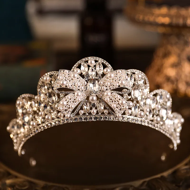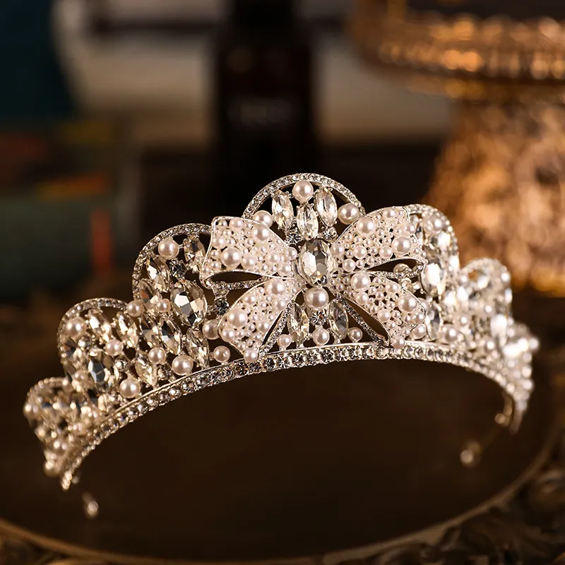 Rhinestone Crown Alloy Pearl Bow Wedding Plate Crown Hair Hoop