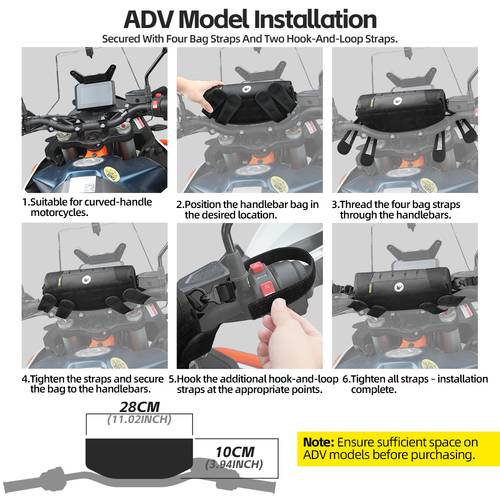 Equipped with the Molle system, this handlebar bag is designed for easy customization and can be attached to other compatible gear if needed. The adjustable strap allows for a secure fit on the handlebar or riser, making installation quick and simple, without the need for complicated modifications. Whether you're commuting, touring, or off-roading, this handlebar bag ensures that your tools and essentials are always within easy reach.