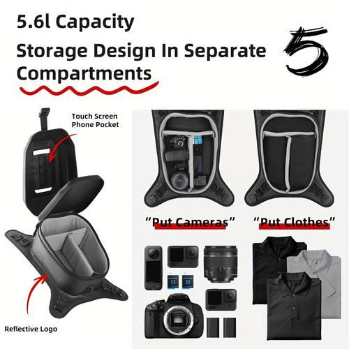 5.6L Capacity: The 5.6L capacity provides enough storage space for your essential items such as a phone, camera, wallet,