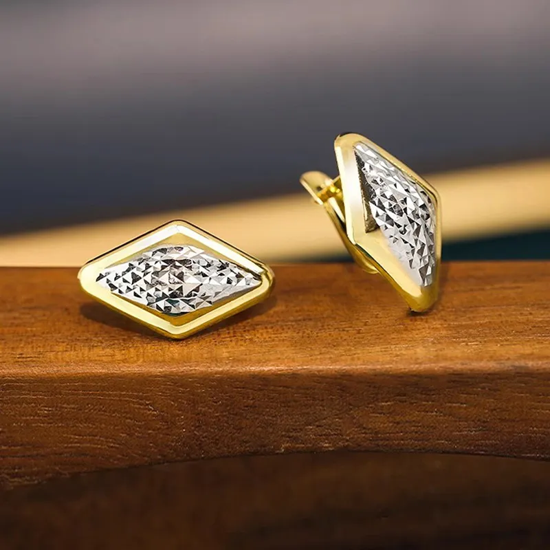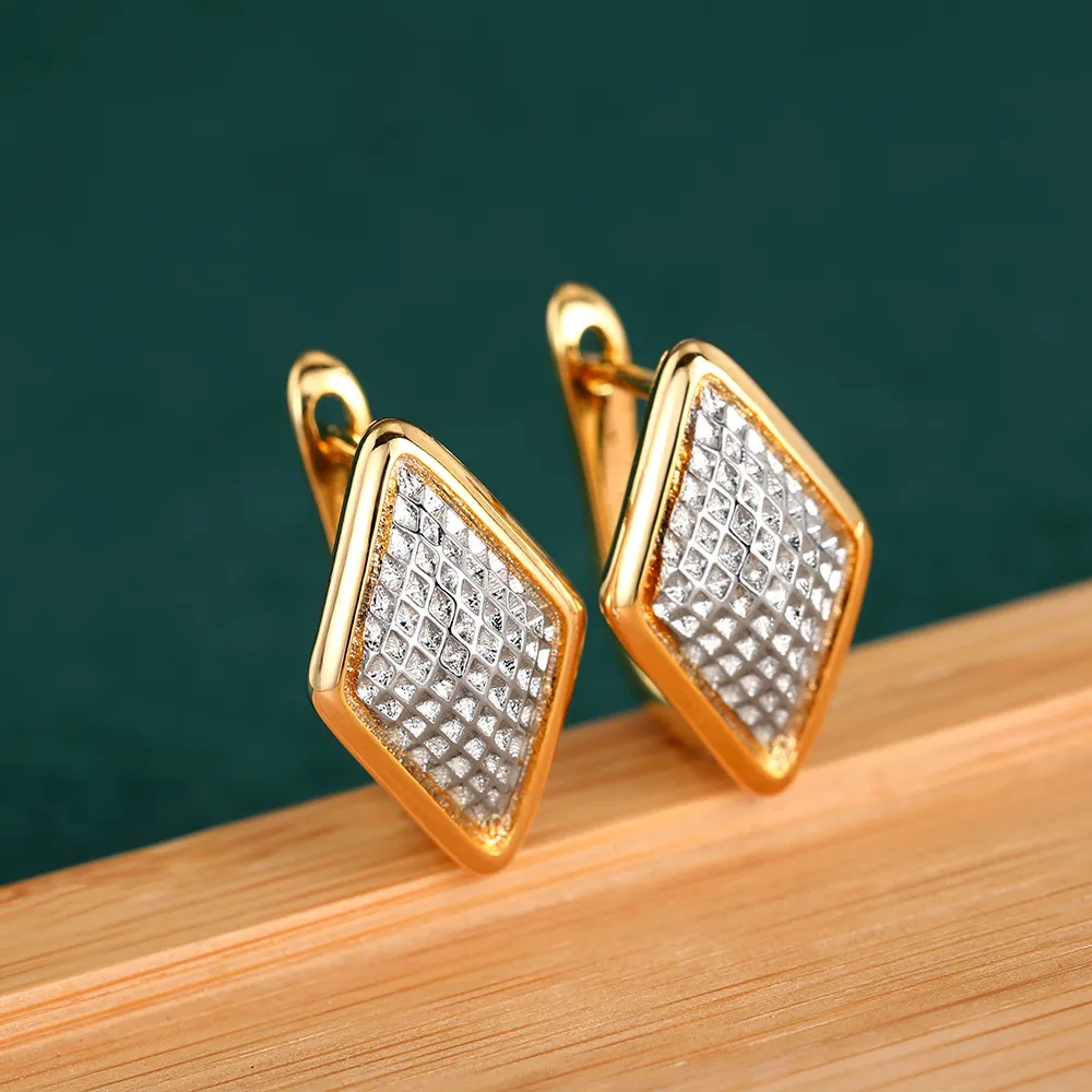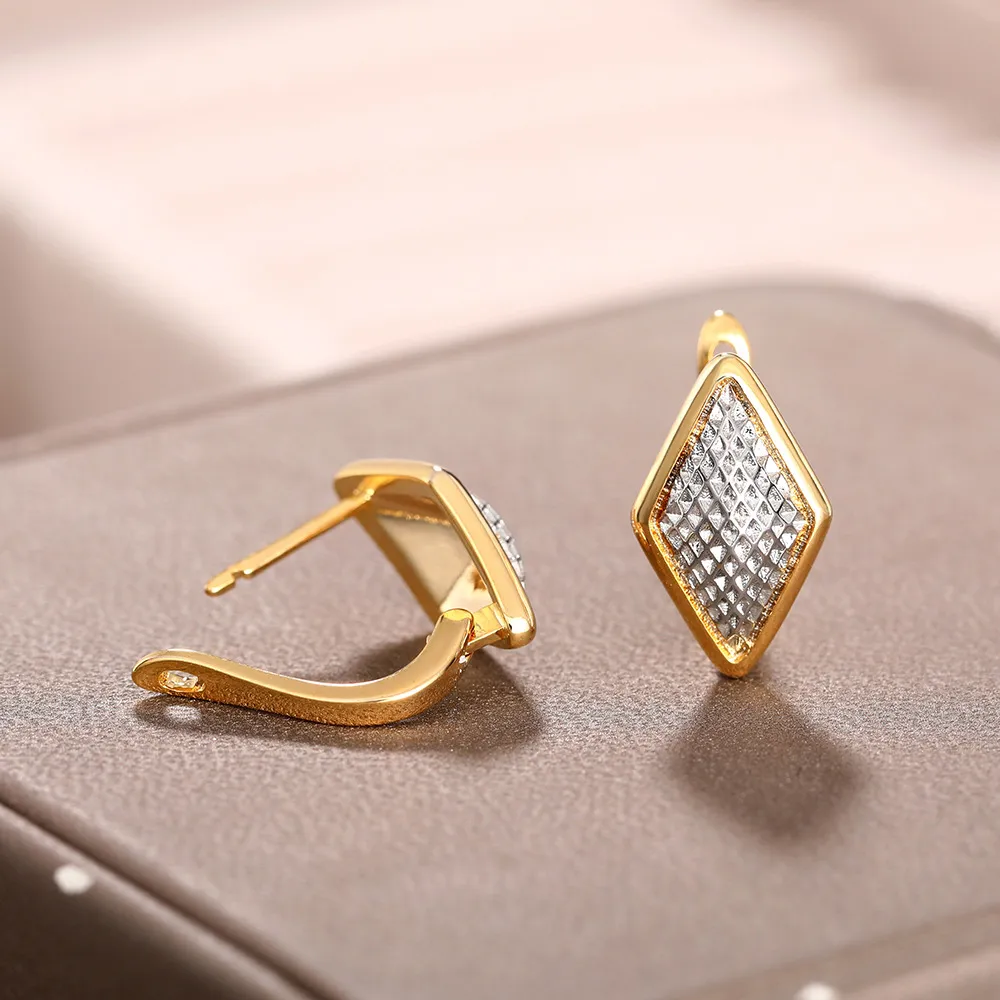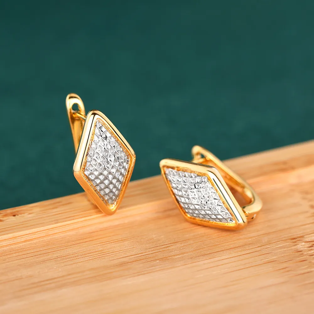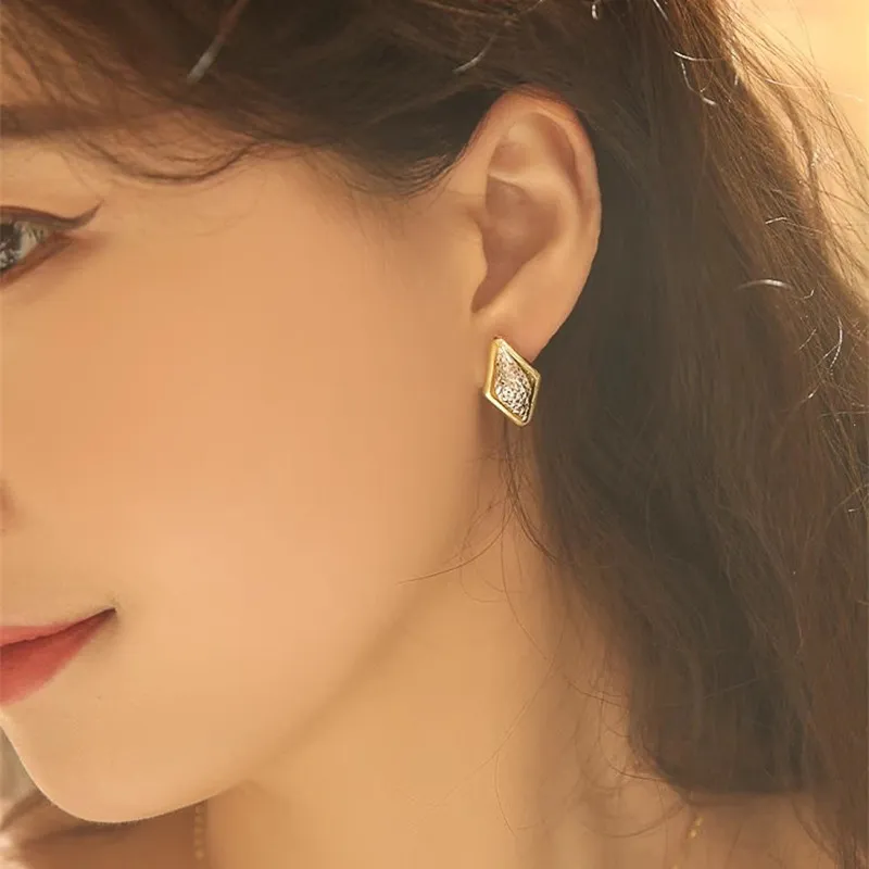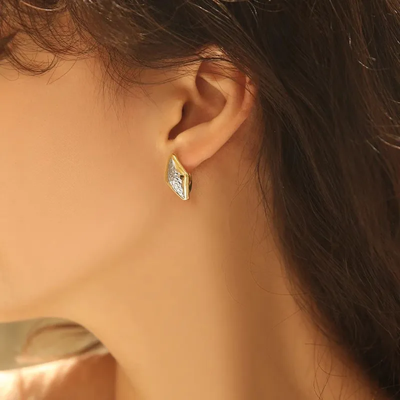 Rhombus Earrings Female Two-tone Geometric Design