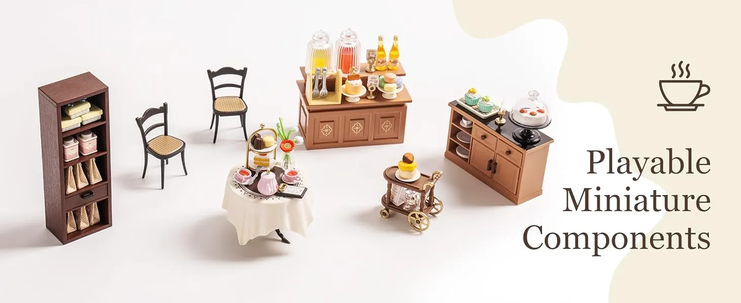 - Product Name: ROBOTIME DIY Miniature Dollhouse Kits Sweet Sips Tea Craft Kit for Xmas Gifts