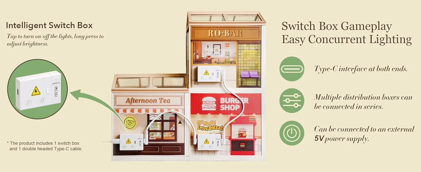 The kit includes LED lighting that enhances the cozy feel of the tea house, casting a warm glow over the miniature scene. The LED lights add a magical touch, especially in low light, making the tea house look even more inviting. Powered by batteries, the LED lighting is easy to install and operate, allowing you to turn it on whenever you want to enjoy the ambiance.