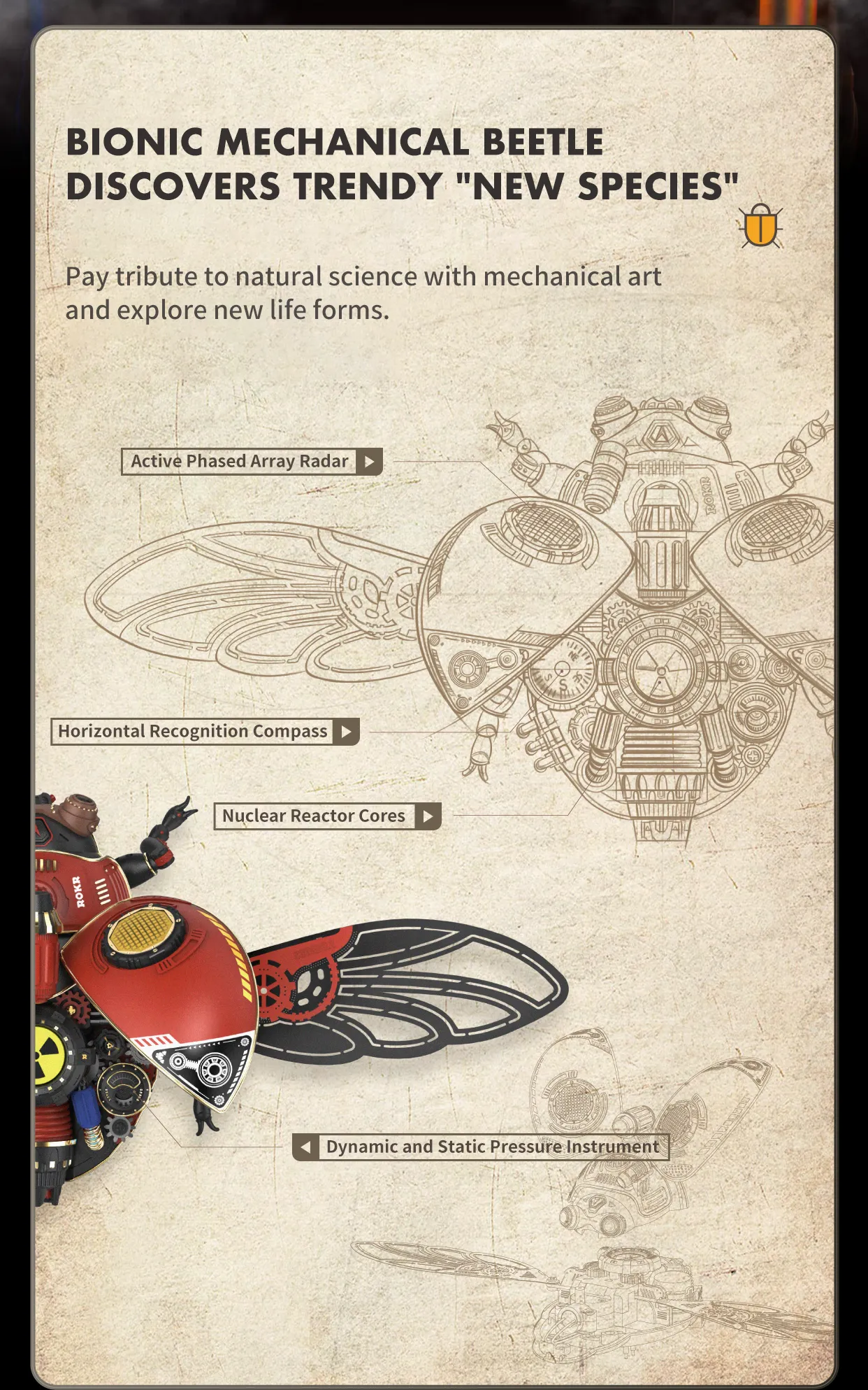 Robotime Rokr Scout Beetle ABS Plastic Metal Punk Style 3D Puzzle Gift For Kids Adults Easy Assembly Mechanical Design Game Toys
