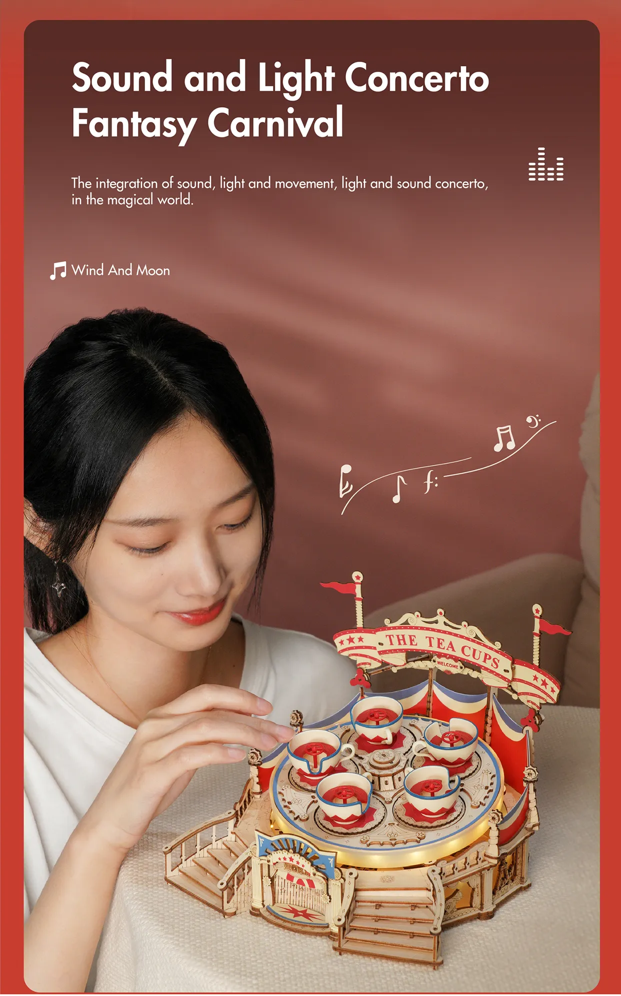 Robotime ROKR Tilt-A-Whirl Tea Cup Amusement Park Building Toy: A Whimsical 3D Wooden Puzzle