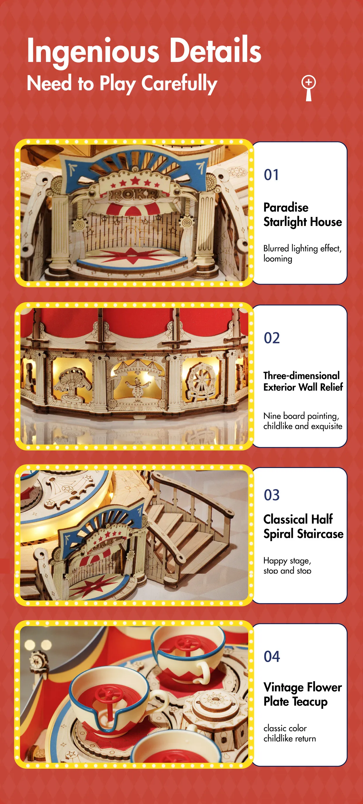 Step into the magic of amusement parks with the Robotime ROKR Tilt-A-Whirl Tea Cup Building Toy, a delightful 3D wooden puzzle that brings a classic carnival ride to life. Designed for kids, teens, and adults, this hands-on toy lets you build a charming tilt-a-whirl tea cup ride, complete with moveable parts and intricate details. Whether as a birthday gift, Christmas present, or a relaxing DIY project, this puzzle combines creativity, craftsmanship, and amusement park nostalgia.