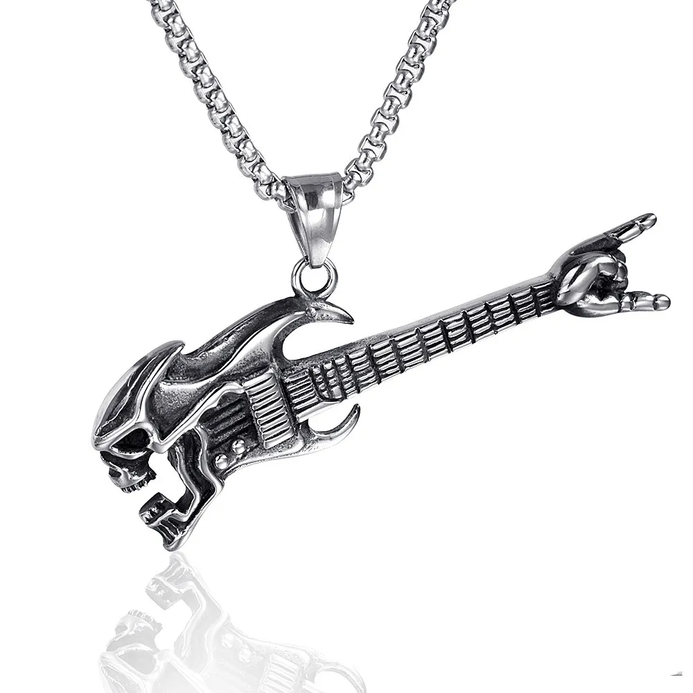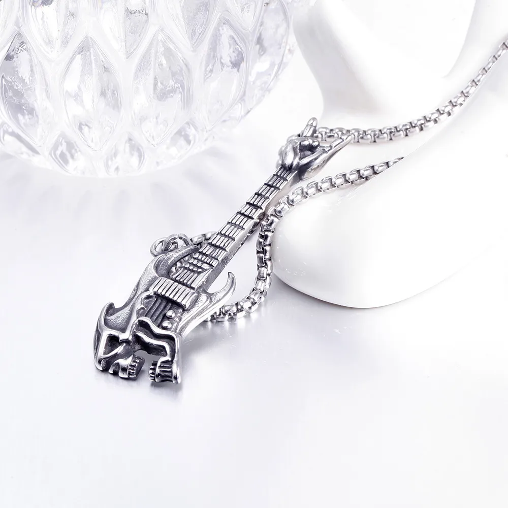 The skull is an enduring symbol of rebellion, strength, and fearlessness—traits closely associated with the rock 'n' roll lifestyle. The addition of a guitar in the design makes this pendant a perfect tribute to the world of music, capturing the essence of rock culture. Wearing this pendant is a way to express your love for music and your free-spirited nature, making it ideal for those who identify with the boldness and energy of rock music.
