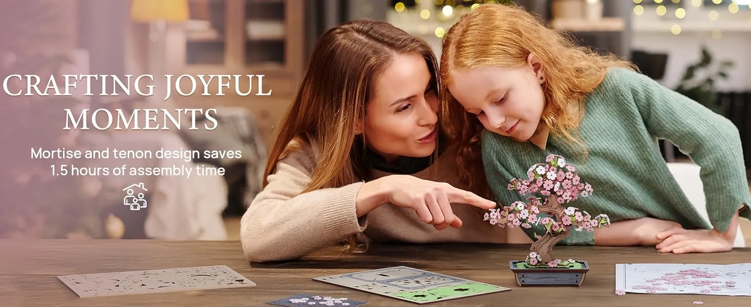 The Rolife 3D Puzzle Sakura Bonsai kit is designed for ease of assembly, even for those new to 3D puzzles. With the included instructions, you can effortlessly follow the steps and bring your bonsai tree to life. The puzzle pieces fit together precisely, making it easy to assemble the wooden tree and artificial flowers without the need for glue or additional tools.