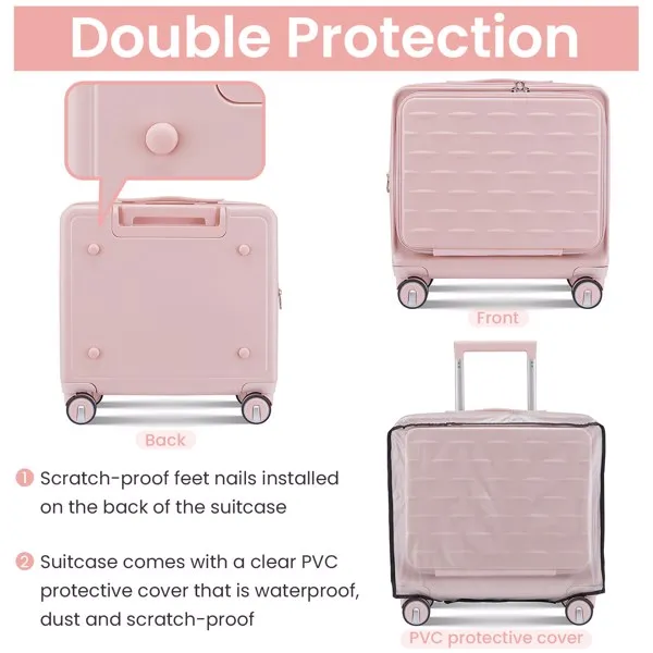 【Front Opening Compartment】This suitcase has a front compartment to categorize your computer or iPad and passport registry items for easy access, easy to separate electronic devices from clothing.