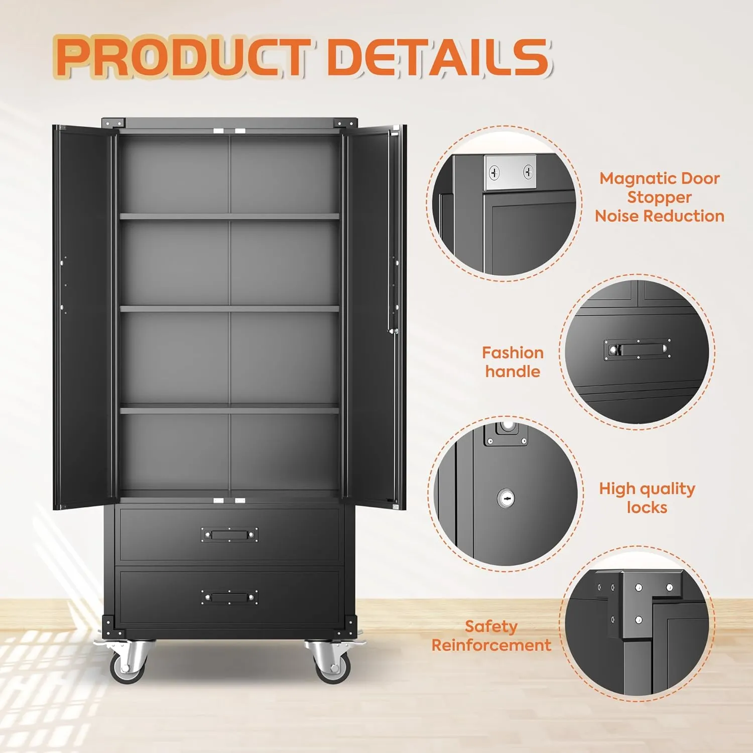 - 【Heavy Duty Metal Frame & Environmental Coating】: Our metal storage cabinets are made of heavy gauge cold-rolled steel plate, load capacity up to 120lbs per shelf solid and strong.
