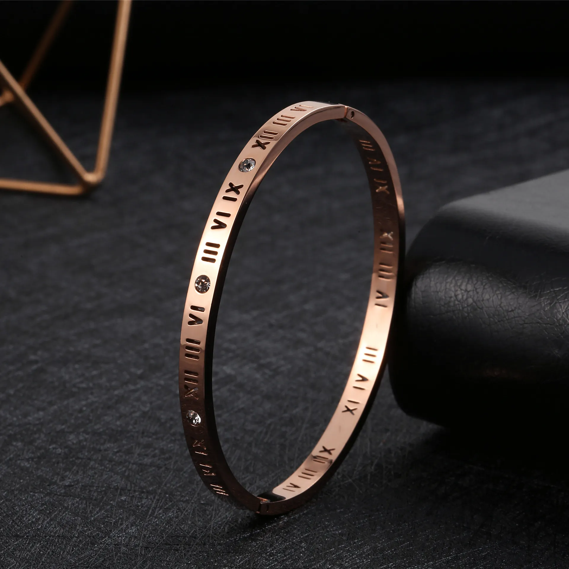 Crafted from high-quality titanium steel, it offers a perfect balance of lightweight comfort and exceptional durability. Whether you're wearing it as a standalone accessory or stacking it with other pieces, this bracelet is versatile enough to elevate any outfit. The Roman font engraving offers a nod to history and ancient culture, making it not only a stylish accessory but also a conversation starter.
