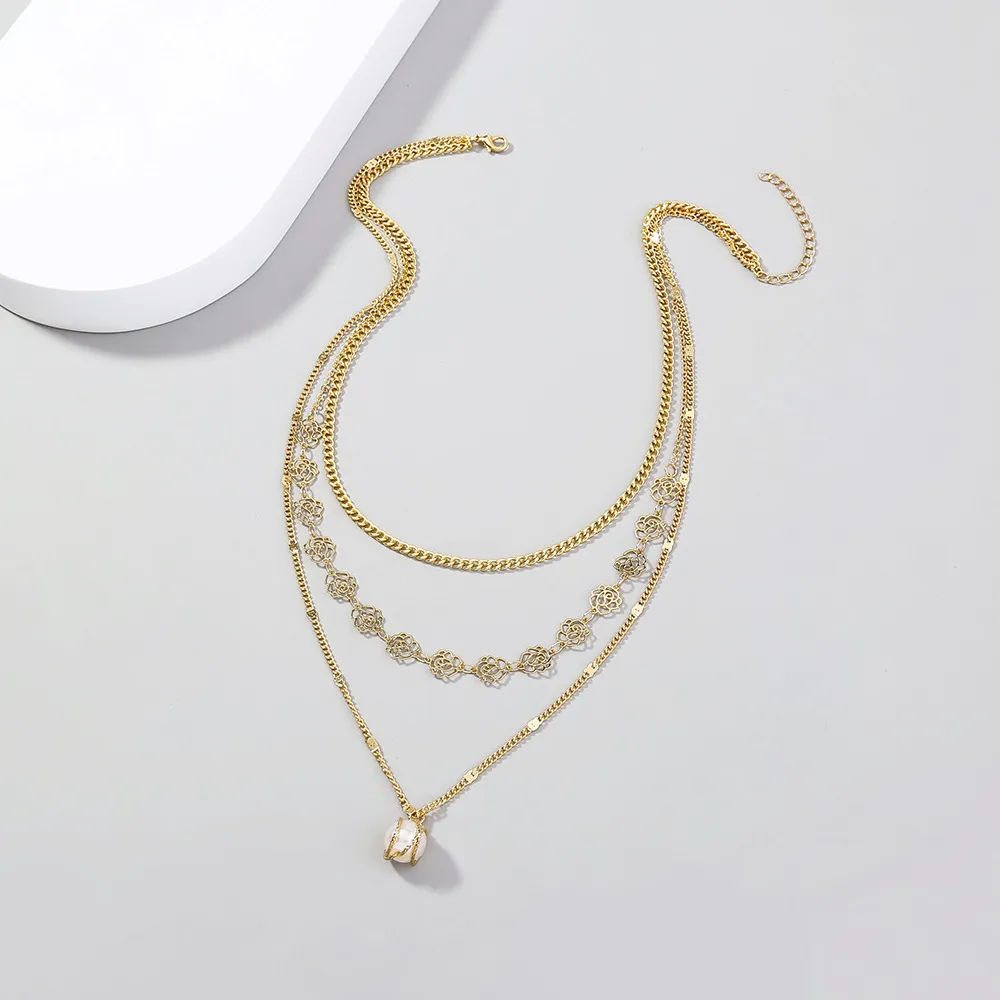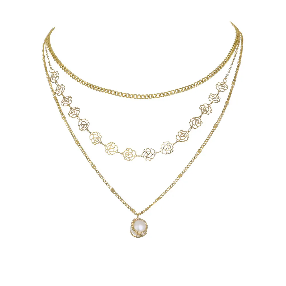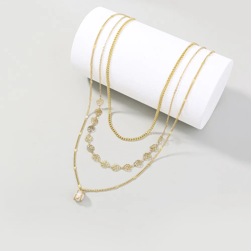 Rose Flower Metal Tassel Multilayer Necklace