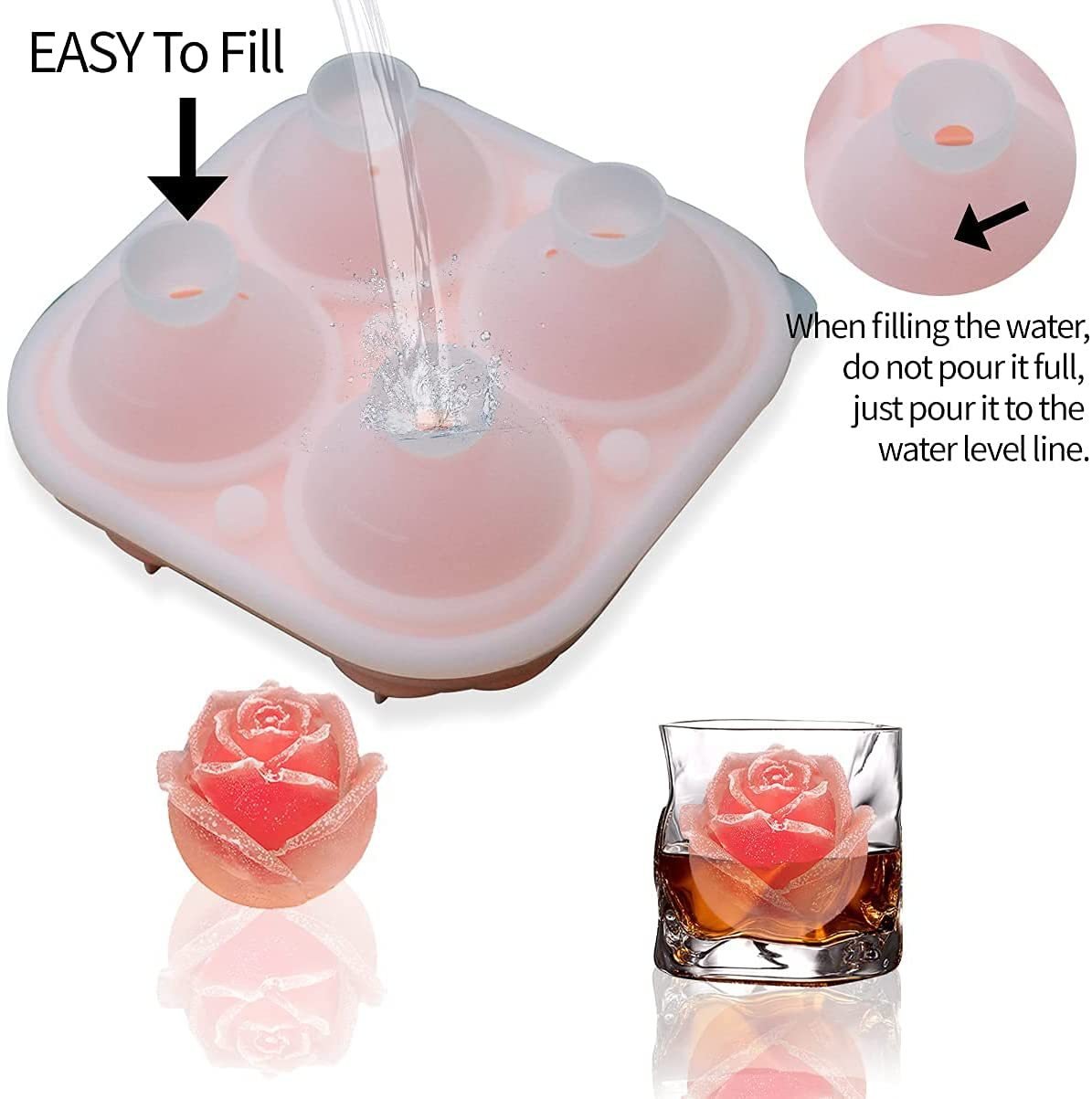 1. Pour water or other drinks into the rose mold, do not overflow.