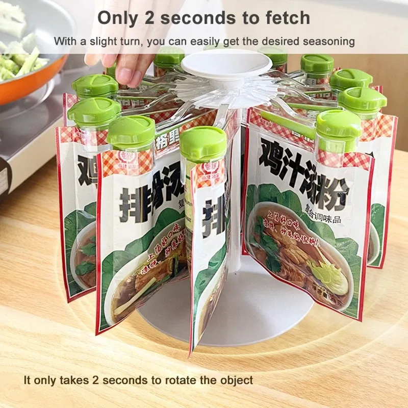 If you’re looking for an efficient, stylish, and durable way to store your spices, the Rotary Rack Kitchen Spice Bag Storage Rack is the perfect solution.
