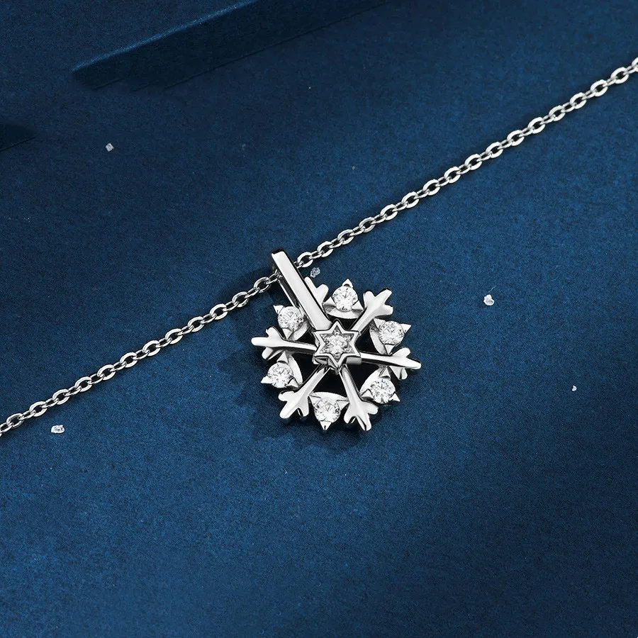 Rotatable 925 Silver Snowflake Necklace Women Luxury Niche Design Shiny Rhinestone Jewelry Autumn And Winter Birthday Gift For Friends
