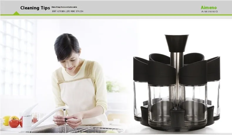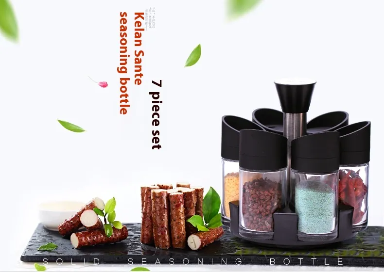 Rotating Glass Seasoning Bottle Creative Kitchen Condiments Box