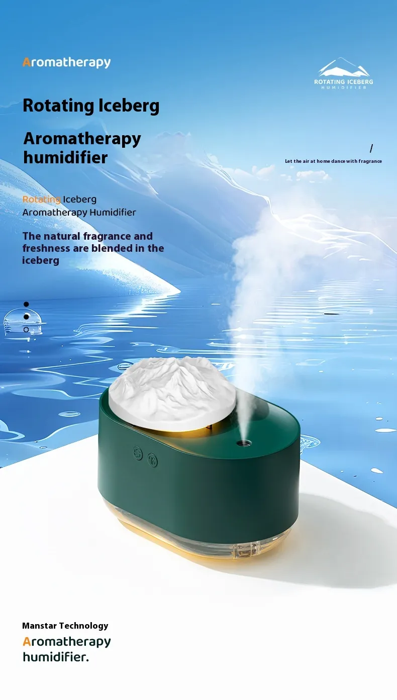 Rotating Iceberg Aromatherapy Spray Mute USB Humidifier | Quiet and Soothing Humidification for Your Home