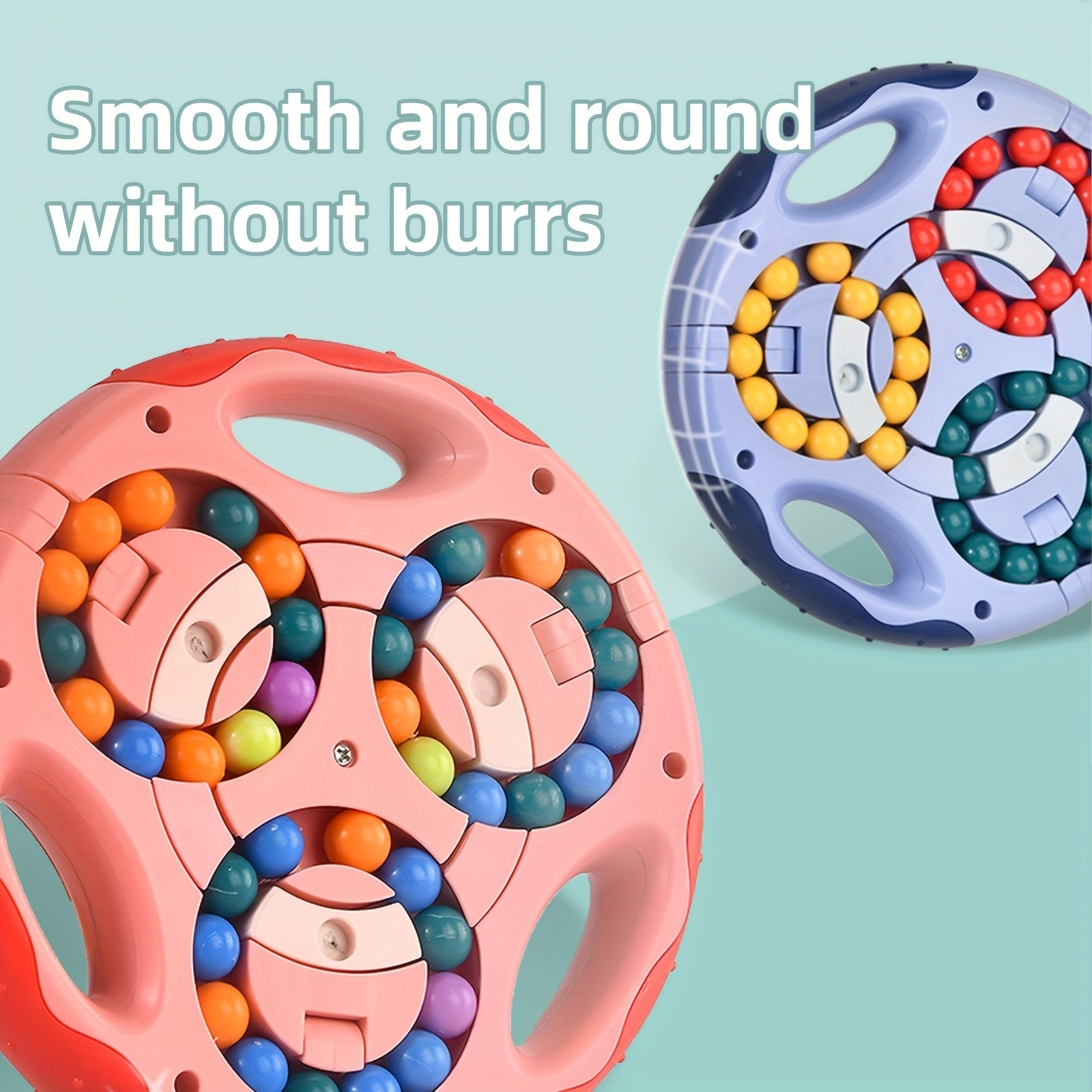 - (Non-slip Design)Both sides of the colorful ball rotating toy are designed with protruding particles, which can increase the friction with the hand, and also can massage children's hands.